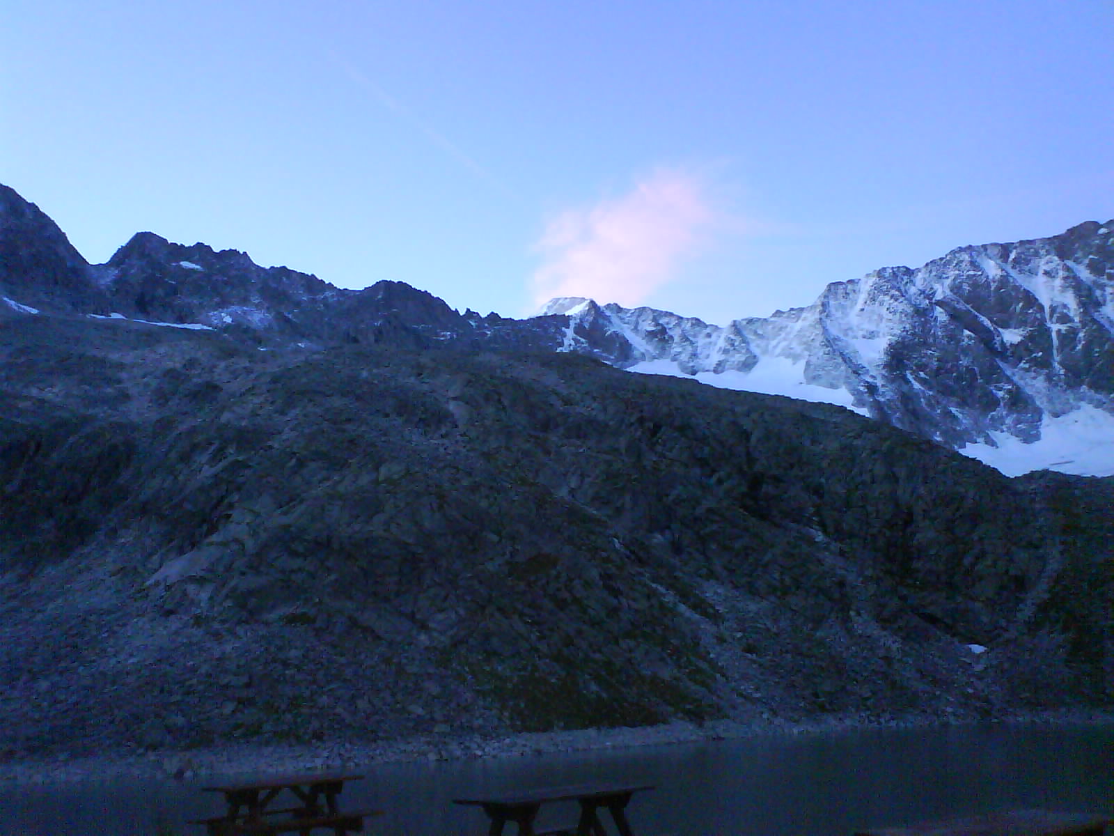 La trasferta si è svolta con il mio ranch fino alla Val Camonica attraverso l’autostrada del Brennero, Trento e il Passo del Tonale. Parcheggiamo nel fondovalle nei pressi di Ponte di Legno e cominciamo a salire la valle dei 3 laghi D’Avio diretti al Rif. Garibaldi. Bel rifugio, bel trattamento, fuori fa già un freddo becco. Raggiungiamo il rifugio in 3 ore circa di ascesa tranquilla.
