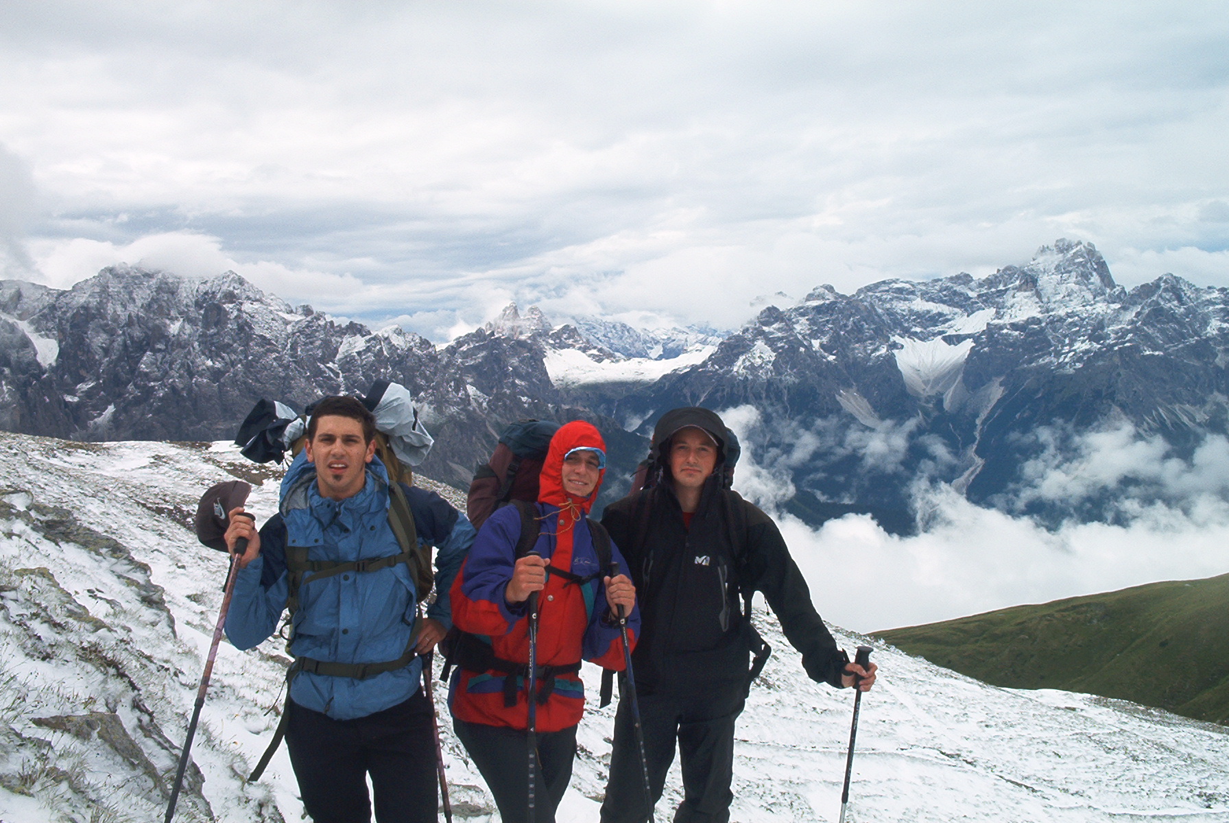 La data di partenza inziale, il 3 agosto, vede un rinvio per le pessime condizioni atmosferiche. Si parte il 4. Alle 6 di mattina passo a prendere tutti con la mia macchina, compreso mio padre Valter solito autista in queste occasioni, e alle 8.30 siamo sulla cabina che porta al M.te Elmo. La traversata partirebbe da S. Candido ma il giorno perso per il maltempo ha cambiato l’iniziale tabella di marcia.