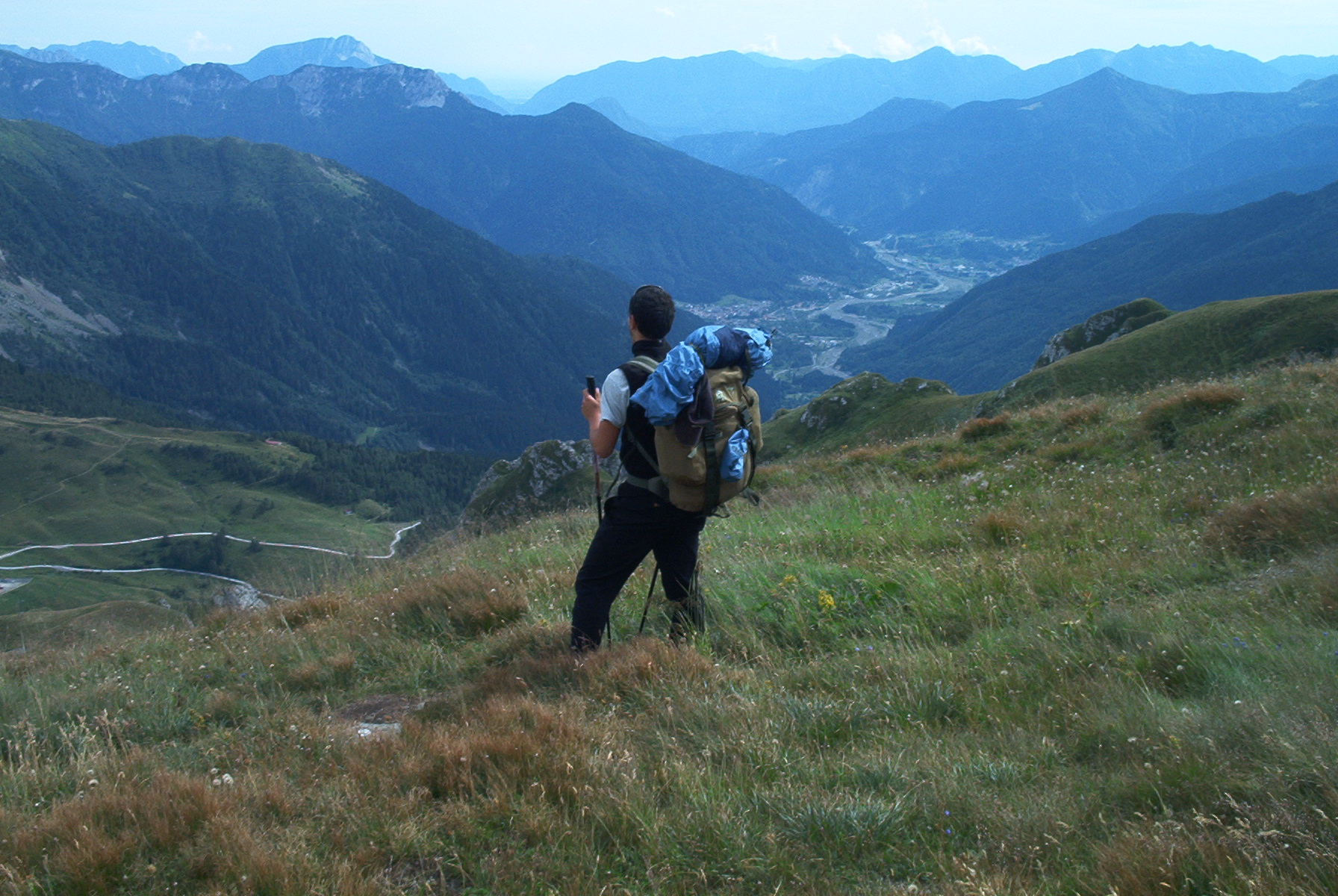 Il terzo giorno comincia con l’ascesa al P.sso Sesis e la successiva discesa della Valle di Fleons. Ci lasciamo alle spalle finalmente la Val Visdende e il Monte Rinaldo portatori di sventura.. Oggi il passo è molto rilassato, è una tappa “corta”. A Fleons facciamo pausa. In discesa mi danno fastidio le ginocchia e le piante dei piedi, si tiene duro e si prosegue. Casera Sissanis, Quota Pascoli, Passo Giramondo; la discesa da quest’ultimo è dolorosa e interminabile.