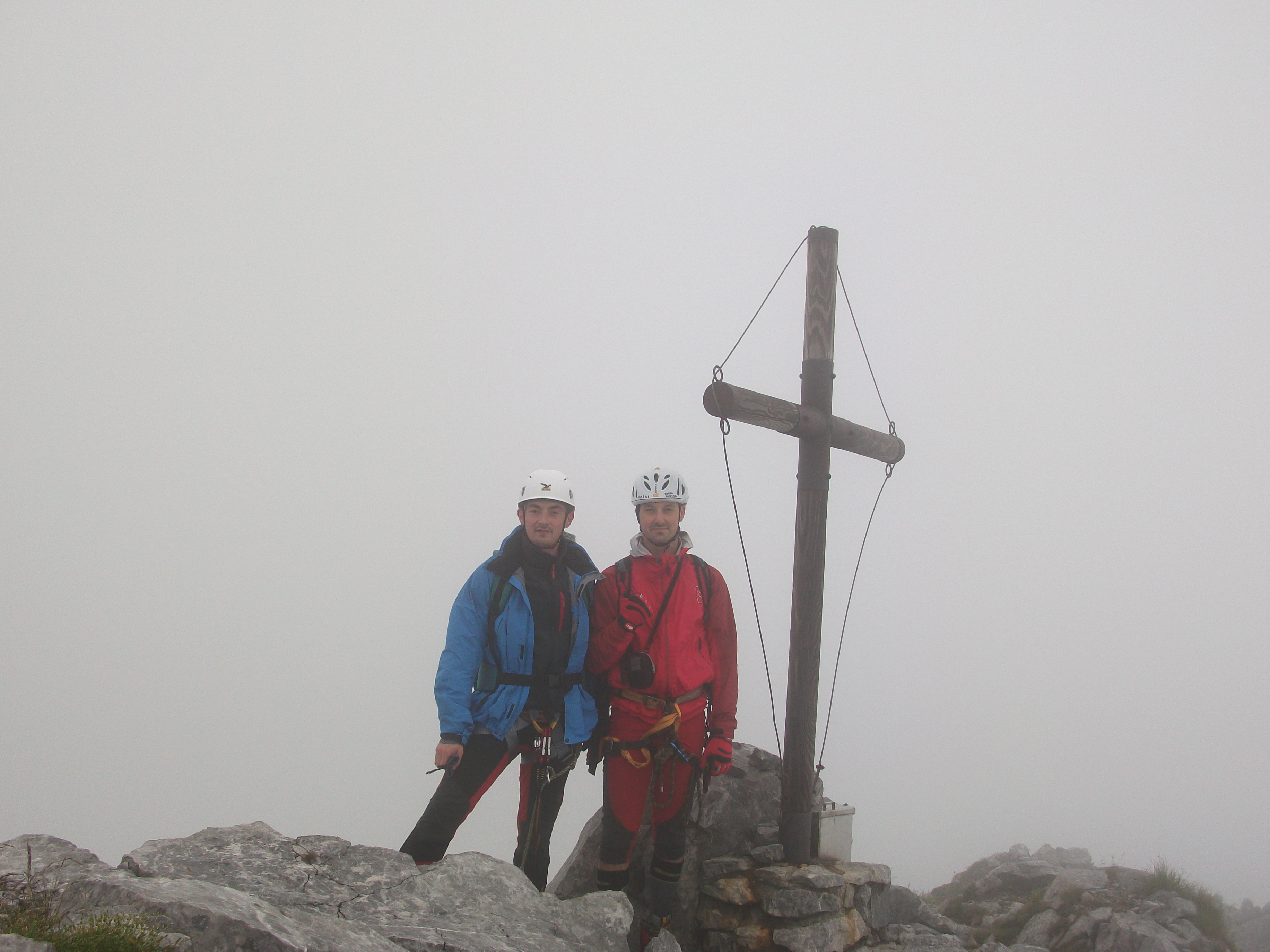 Su gli scarponi! Lascio la roba in eccesso in macchina e carico il resto nello zaino: moschettoni, cordini, imbrago, impermeabile, giaccavento e cibarie varie. Oggi mi porto appresso, inoltre, i bastoncini telescopici da trekking visto che ho un piccolo inconveniente alla gamba destra. Prima di iniziare l’escursione ci rechiamo in rifugio per scaldarci un pò con un buon the caldo e per salutare i gestori del Cason, Silvio e Lucia (che sono poi le persone a cui sono dedicate le vie del Checco sul zuc). Mentre gustiamo il the guarda un pò chi entra! L’ottomila Cirillo che per un disguido di orario con i suoi amici si è ritrovato oggi senza compagni e, dato che anche lui è in loco per andare a vedere la nuova ferrata, si offre molto volentieri di accompagnarci, con grande gioia di Mario che è suo alunno dal punto alpinistico dalla notte dei tempi.. Alle 10 si parte. La marcia è abbastanza quieta e si svolge tra paesaggi autunnali di incomparabile bellezza per colori e luci. La gamba da fastidio ma non si dice niente, come si conviene ad un buon alpinista e di grande aiuto mi sono i bastoncini. In una mezzoretta arriviamo ad uno spiazzo erboso e paludoso fuori dal bosco dove scorre un piccolo ruscello limpido. Prendiamo sulla sinistra per prati e ghiaie, non senza aver dato prima uno sguardo allo splendido pianoro di Lanza. La marcia continua allegramente, grazie Cirillo che non sta zitto un momento, per ripidi prati in direzione dell’attacco della nuova ferrata. In breve siamo alla prima scaletta dove ai suoi piedi ci fermiamo per indossare casco e imbrago. Naturalmente i più bravi, Mario e Cirillo, non si imbragano dato che loro si assicurano su ben altri gradi. Prima di partire tuttavia ho il tempo di fare un giro nei dintorni in particolare all’interno di una galleria di guerra li vicina. Parte Cirillo e in ordine seguono il sottoscritto, Matteo, Francesco e Mario. La salita comincia con una scaletta verticale di pochi metri che lascia posto a una catena continua che porterà fino in vetta. Il mio stato d’animo è sereno e molto tranquillo (al contrario della ferrata del Dreton di Culzei) segno che comincio ad abituarmi alle ferrate. Riesco perfino a fare un tratto senza legarmi alla catena e, cosa più importante, arrampico in libertà sfruttando gli appigli naturali anche nei tratti più verticali. Certe volte tuttavia l’attrezzatura da ferrata mi costringe ad aggrapparmi alla catena per disincagliare i moschettoni che si incastrano piuttosto spesso. La salita prosegue tranquilla senza inconvenienti per belle rocce verticali di 2° grado fino alla cima guadagnata in circa 20 minuti di ferrata (160m). Dalla cima la vista spazia a 360°: con meraviglia notiamo che sui Tauri austriaci nevica, si vedono nitide le immagini della Creta di Aip, dello Zermula a poca distanza, dello Jof di Montasio sul quale cappeggia, a dargli un’aria maestosa, una grossa nuvola. Ci fermiamo circa un’oretta in punta notando dei cacciatori nella valle sottostante (che non piacciono per niente a Cirillo, e mi trova perfettamente daccordo). Si fanno 4 risate sulle battute del Floreanini, un settantaquatrenne veramente spiritoso, persona squisita ed intelligente, ma si pensa anche a dire una preghiera per i nostri cari, soprattutto la madre di Gigi, Silvana, che non passa un bel periodo a causa di un brutto male e speriamo che quassù le nostre preghiere siano ascoltate meglio. Il freddo vento che inizia a soffiare da N ci invoglia a muoverci verso valle e per la discesa utilizziamo un altro tratto di ferrata nuova che scende sul versante N-O del monte. Non ci sono difficoltà e viene favorito il dialogo: conosco più a fondo Cirillo che mi invita a fare un corso roccia e di scialpinismo con il CAI di Tolmezzo ma gli espongo i miei problemi..Lui di tutta risposta mi dice “c’è sempre una soluzione”. Alla piana paludosa scattiamo qualche foto per catturare attimi di questo paesaggio meraviglioso e, parlando e ridendo, siamo in breve all’auto e quindi a Tolmezzo dove ci viene offerto un buon piatto di pasta dalla mamma di Gigi nonchè moglie di Mario. Saluti a tutti e alla prossima, speriamo al più presto possibile!