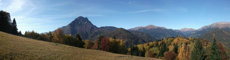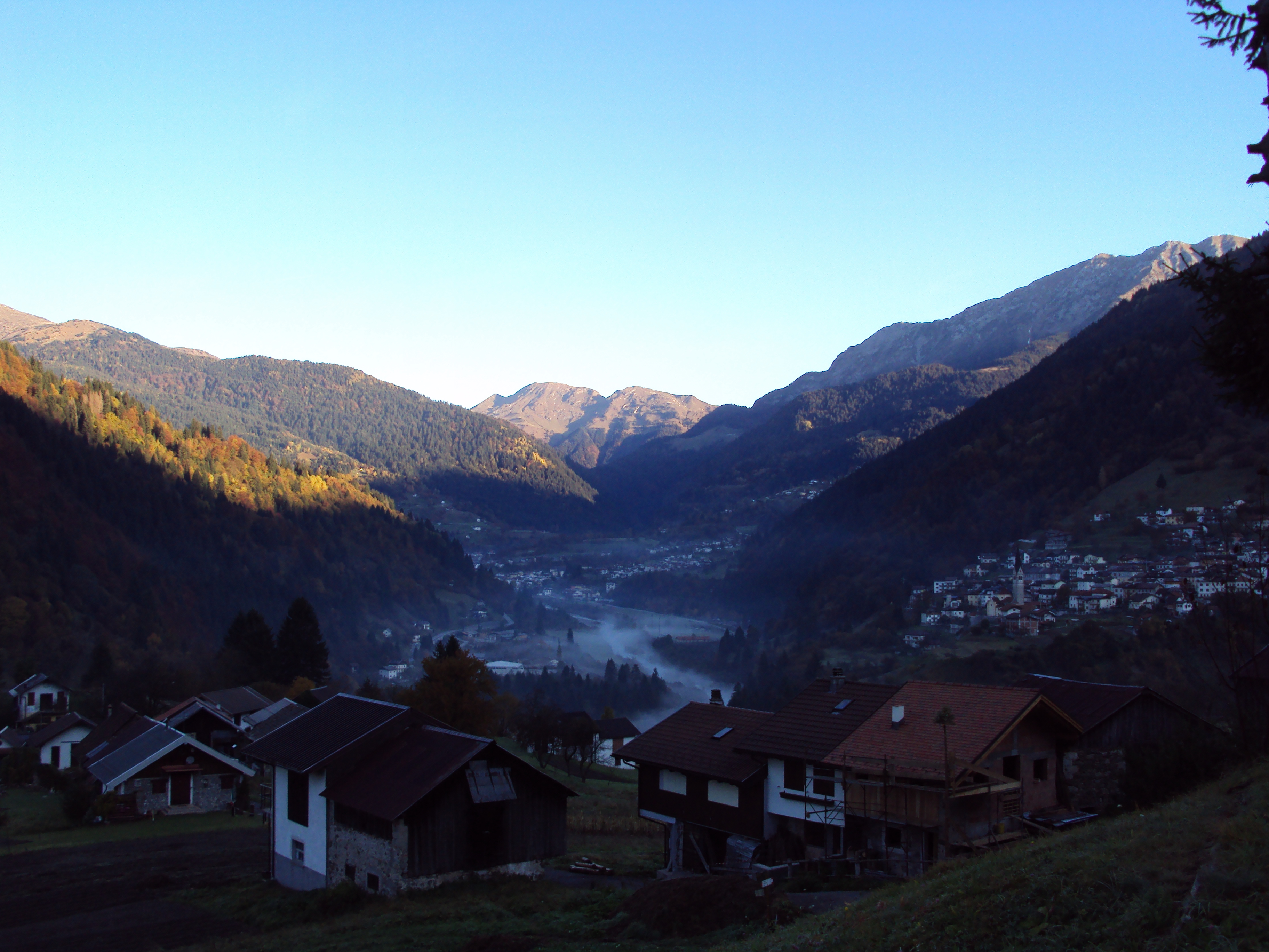 Man mano che il giorno nasce i colori dell’autunno esplodono e i boschi della vallata si incendiano, spettacolare la vista sulla conca paularina.
