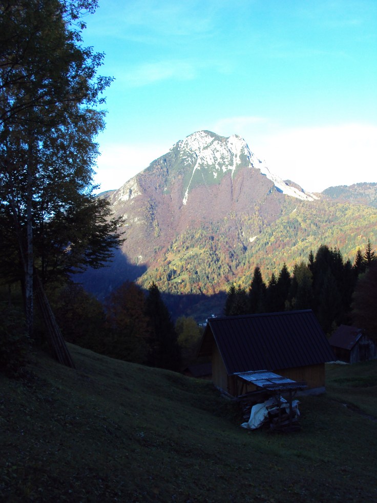 Nonostante l’andatura impressa dallo “scarpettaro” sia abbastanza sostenuta si parlotta allegramente del più e del meno e c’è tempo per gustare del panorama che a tratti si apre nel bosco. In una mezz’ora scarsa siamo allo spiazzo erboso del Rif. Fuarmi, appartato angolo di verde tra i boschi di faggi colorati.