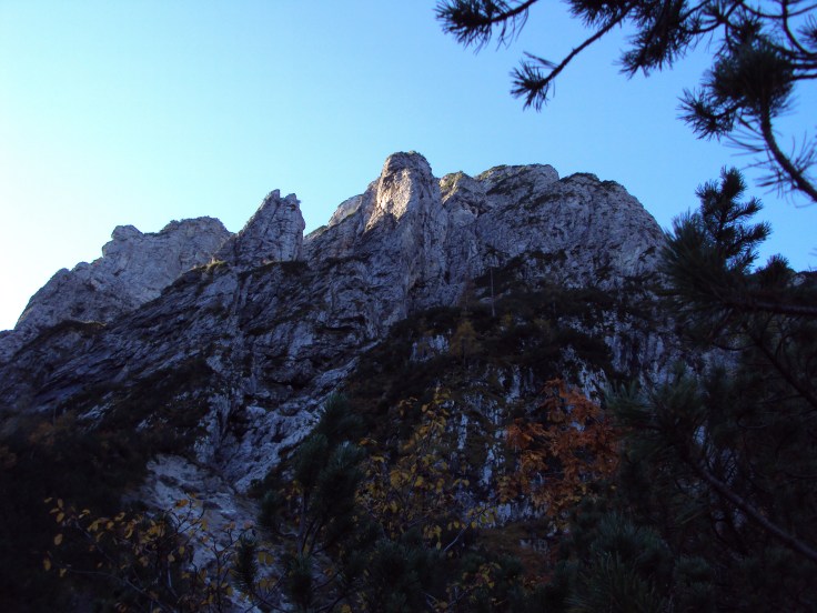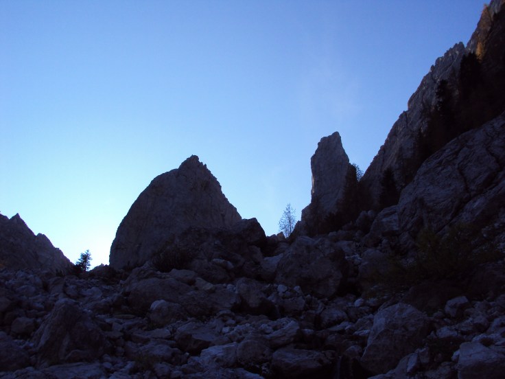 Mi viene in testa di salire la torre Nuviernulis, una scritta rosso sbiadito nelle vicinanze ne indica la via. In 3 attacchiamo i passaggi, poi dopo circa 50m un esposto passaggio di 3° fa desistere prima il mio amico e poi me, oggi non è la giornata per cercarsi “notte” 🙂