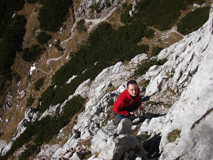 Per oggi infatti l’idea era la salita dello spigolo N-O, una bella e lunga salita alpinistica con tratti di 2° non attrezzati, con successiva discesa dalla normale attraverso la forcella Nuviernulis e il rif. Cjase dal Mestri.. Una breve telefonata ad un amico di Paularo però sconsiglia la salita dello spigolo in quanto a N c’è già neve nei canali e la discesa della normale potrebbe essere troppo difficile (mi affido alle indicazioni di chi già c’è stato non conoscendo il percorso).