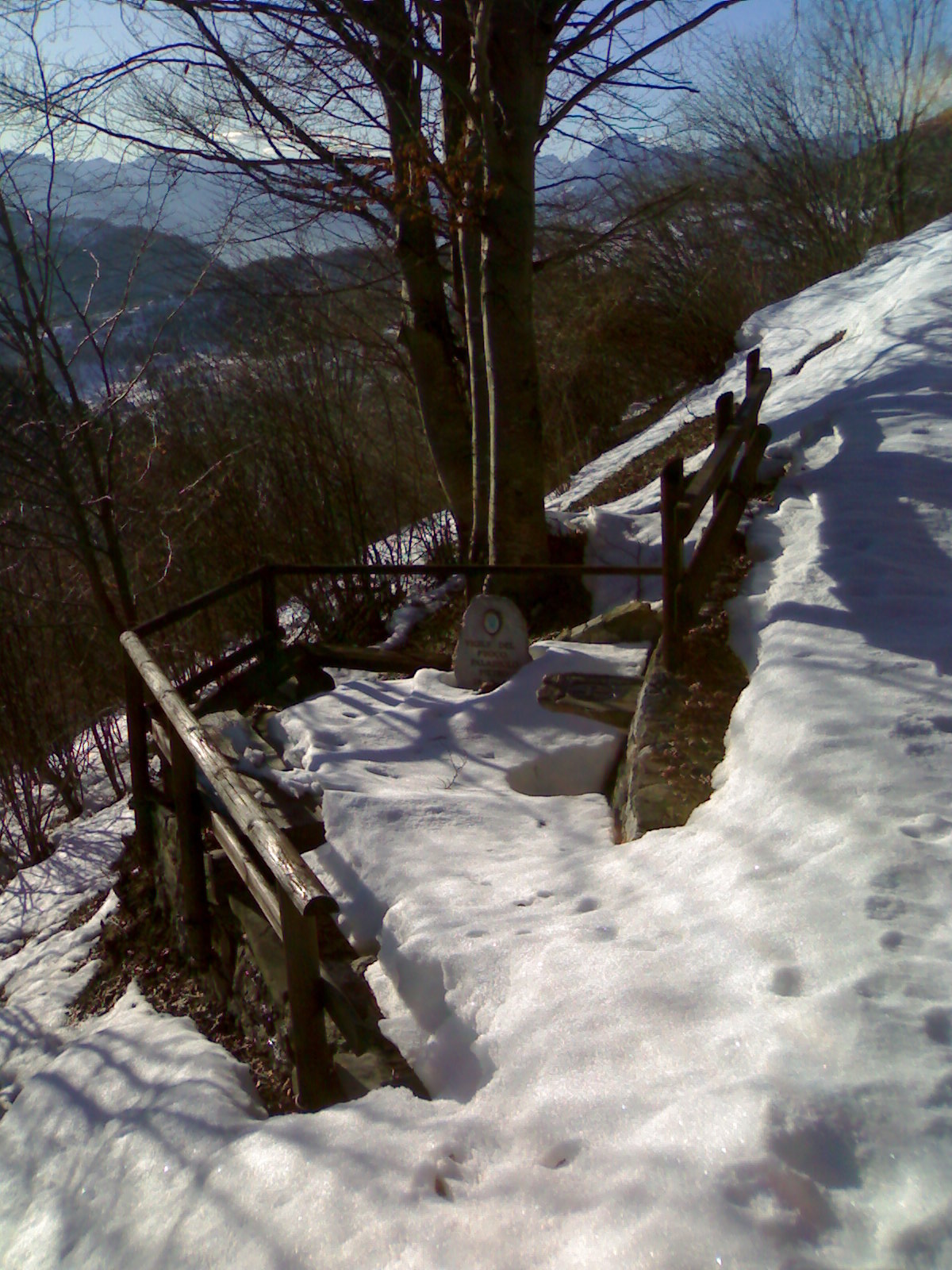 La neve è cemento puro all’ombra dei faggi. In breve arrivo alla sella tra Duron e Piche di Cuar, ci sono dei pendii “zebrati” a cui non si può non fare uno scatto..