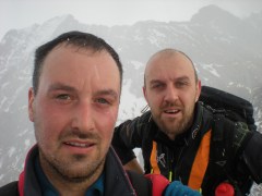 Raggiungiamo velocemente la vicina cima per tracce innevate e ripide di sentiero, una foto e siamo già di rientro.