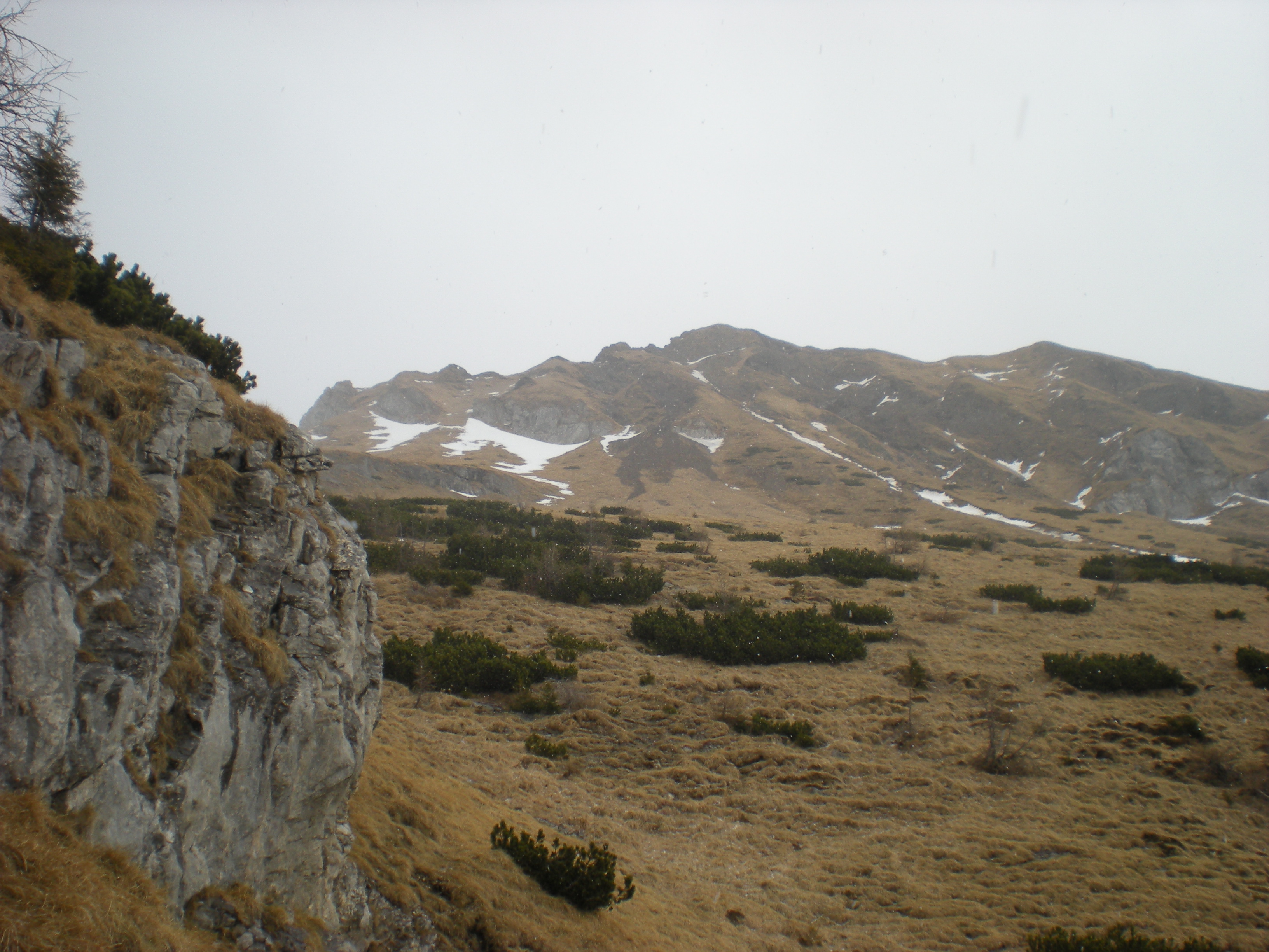 Comincia a piovigginare leggerissimo, siamo in un buco di “bel tempo” eppure il cielo preannuncia un cambiamento meteo che si fa più consistente man mano che guadagnamo quota. La pioggia di trasforma in “saladic”, pioggia ghiacciata che cade a palline, sembra proprio polistirolo. Noncuranti l’andatura concitata ci fa guadagnare velocemente quota rimontando i sempre più ripidi prati in vista della cima. Sopra di noi compare un branco di camosci.