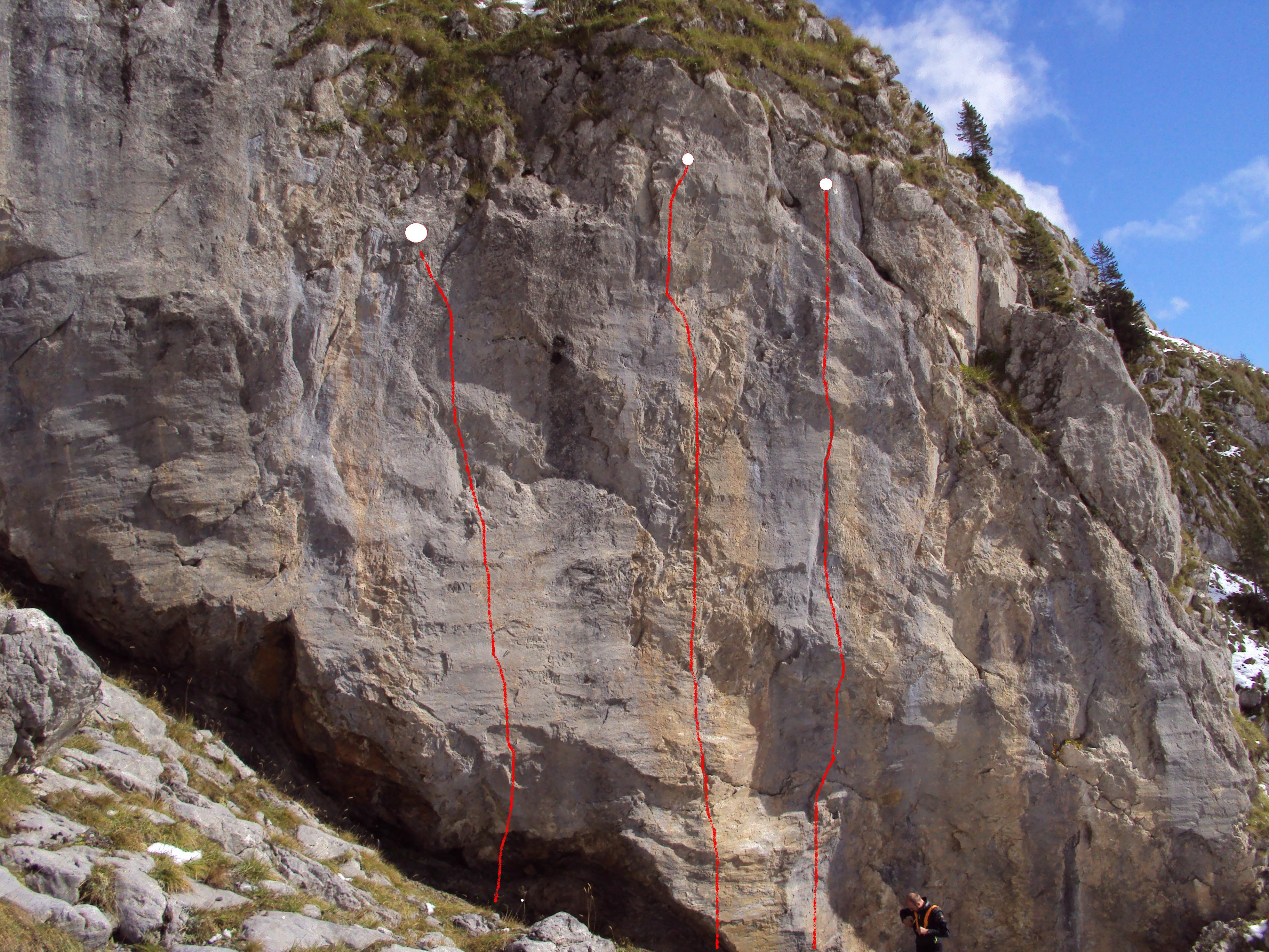 Il risultato finale sono queste 18 vie e mezzo (una linea molto bella credo verrà terminata a breve) realizzate su una parete di roccia ottima paragonabile a quella della conca di Avostanis. In effetti la mia volontà iniziale, che ha guidato il lavoro di questi 2 anni, è  stata quella di realizzare una valida alternativa ai 2 siti di arrampicata classici e super frequentati della zona: la falesia di Avostanis appunto e la vicina scogliera in Pal Piccolo. Sarà il genere di arrampicata, sarà la volontà dei chiodatori che si sono concentrati su linee dure, fattostà che per i climber di media capacità come il sottoscritto gli itinerari percorribili, soprattutto in Scogliera, si limitano a ben poche vie.. Ecco quindi l’ideona di realizzare un sito dove anche le “schiappe”, e io mi inserisco volentieri nella categoria, possano trovare terreno fertile per il loro divertimento, passare una giornata in un gran bel posto tranquillo, con le mucche ruminanti che vivacchiano guardandoti incuriosite e le marmotte che fischiettano ogni tanto a segnalare la loro presenza.