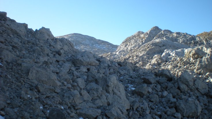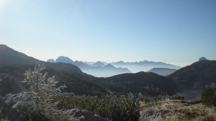 Eh sì! Ora so che sono sotto alle rocce più occidentali della Creta di Aip. La giornata, fuori dalla fredda nebbia, è veramente splendida e al riparo della montagna fa anche piuttosto caldo.