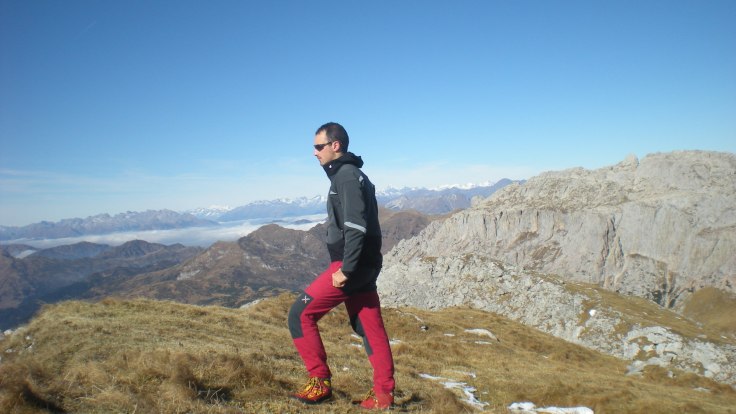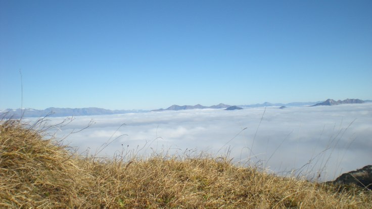 Il panorama che si apre sull’Austria è magnifico, il classico mare di nebbia.. Mi stendo a terra al riparo del vento e mi godo questo tepore e quest’ambiente solitario.