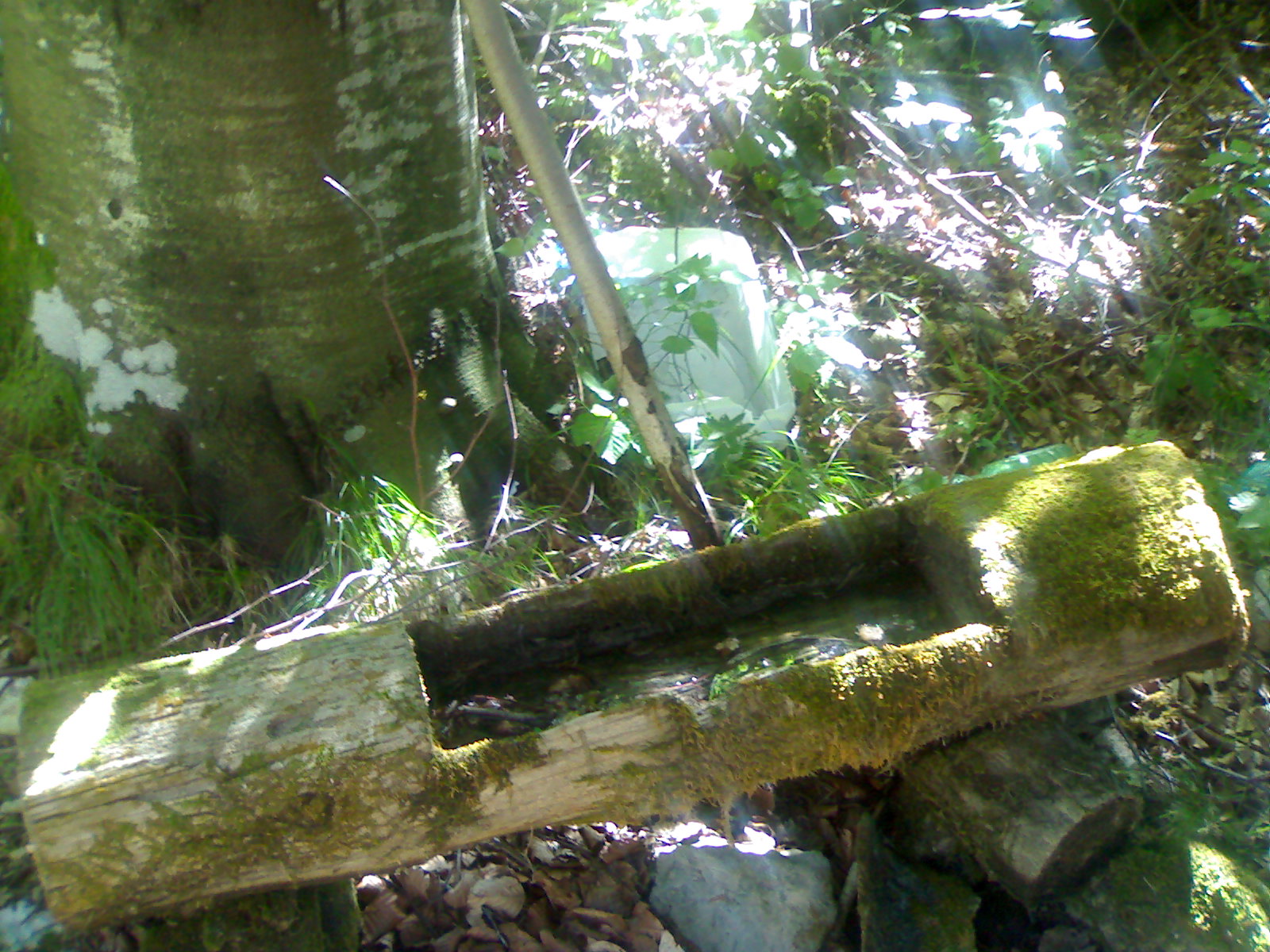 All’uscita dal tratto ripido la traccia ricomincia a spostarsi verso oriente, e si incrociano i primi manufatti dell’uomo, ovviamente argomentati dall’autoctono. Incrociamo delle vecchie carbonaie e il luogo di partenza di una teleferica ove giace ancora un grosso chiodo molto datato. Il traverso si fa ripido verso il canalone dove salgono gli altri e ci ricongiungiamo a loro dopo circa 1 ora e mezza abbondante di cammino nei pressi di un cartello giallo indicante “loc. Pineit o Chiusaforte”. Siamo a quota 1025. Il bamboccio se l’è cavata bene e in salita “ha trottato”.