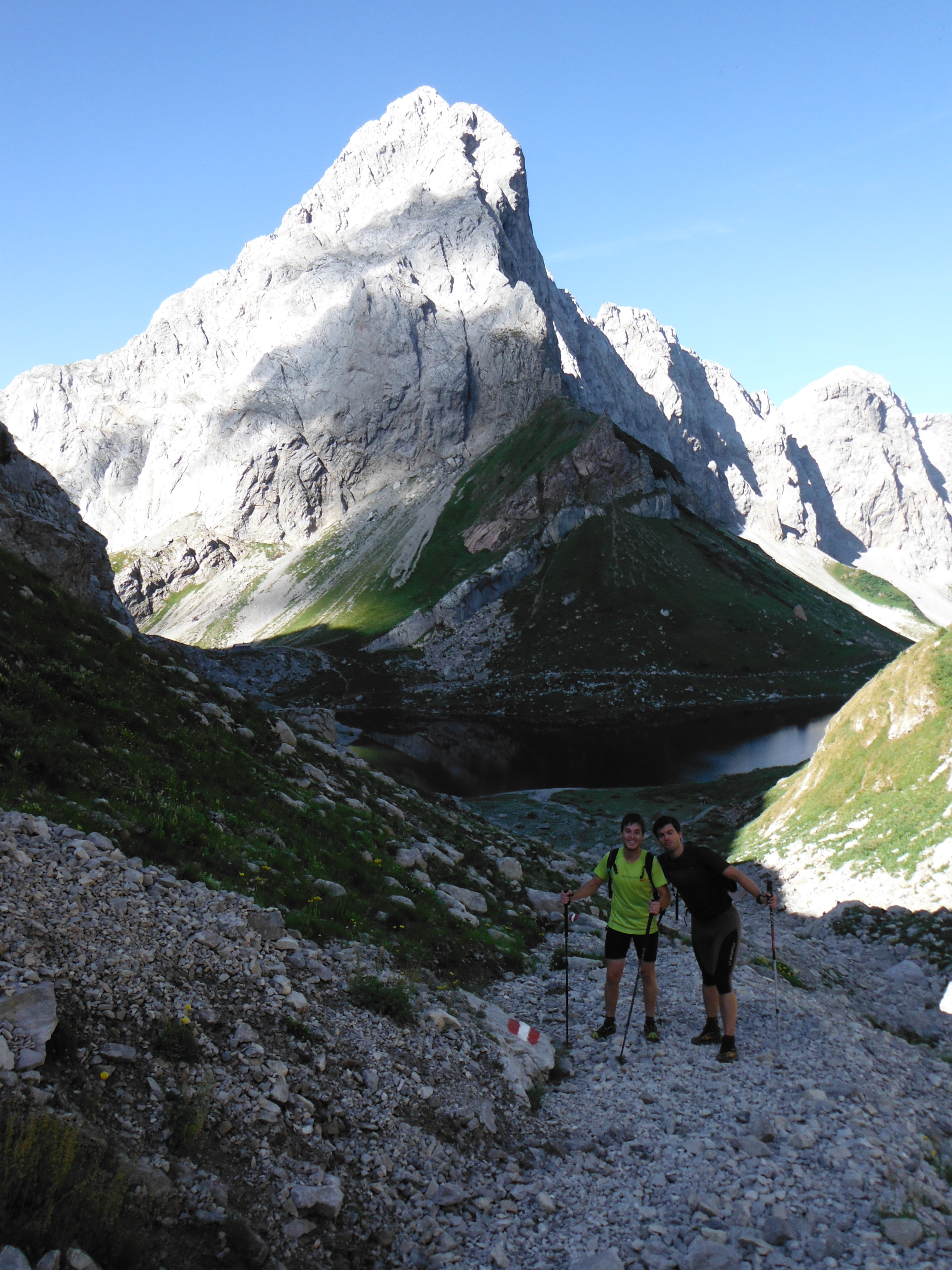 La discesa verso il lago è rapida, immersi in un quadro paesaggistico che ritengo salire sul podio dei posti più belli delle alpi Carniche: il lago di Volaia, le verdi dorsali del Rauckokel contrapposte alle pareti del Capolago e di tutta la cresta del Volaia.. Bellissimo.