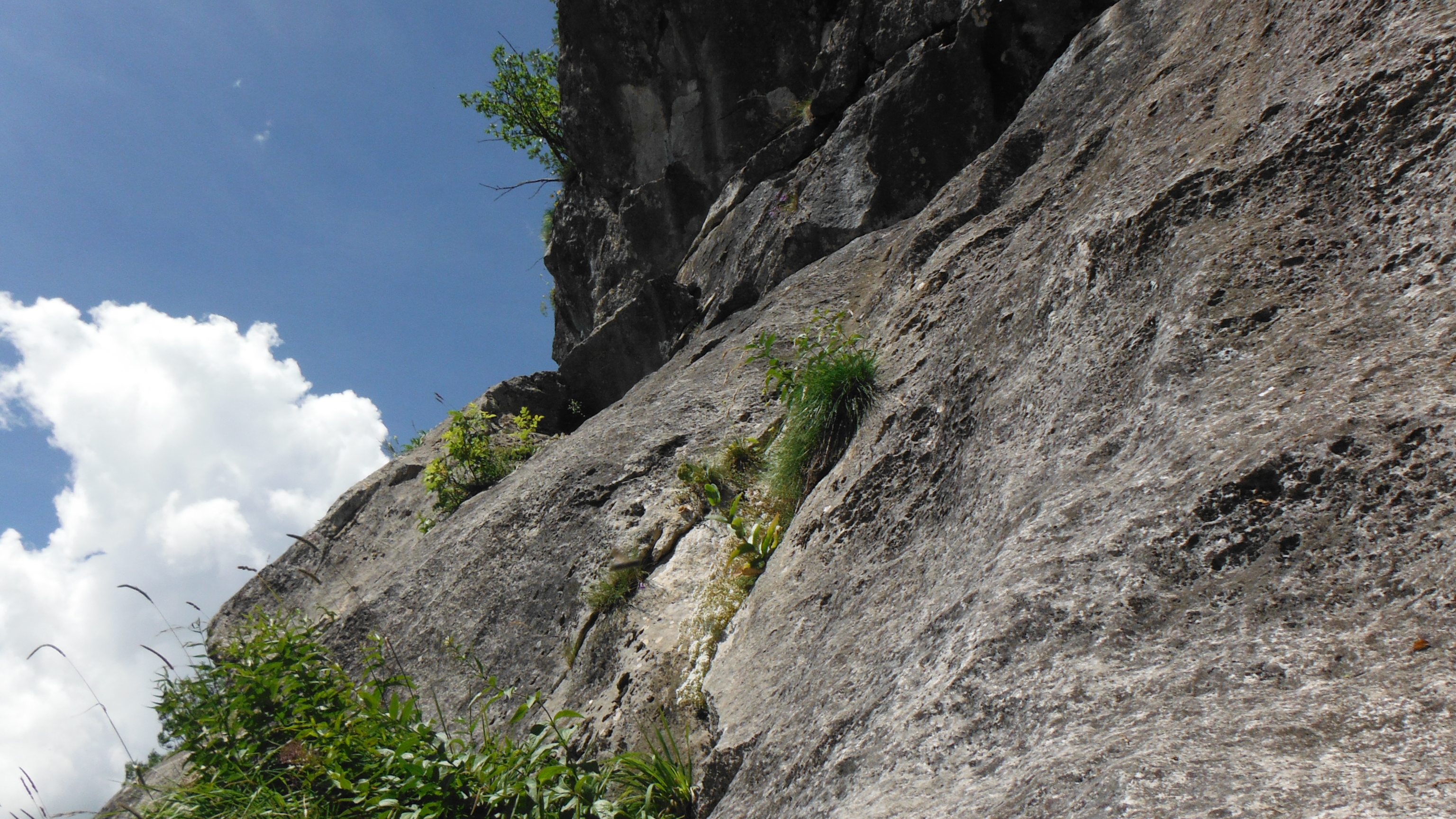 Ai miei occhi qua dal basso delle placche posso vedere a non più di 40m sopra di me, parzialmente oscurati dalle fronde di un grosso acero che vegeta alla base. Ciò che si prospetta è comunque quello che ogni alpinista vorrebbe vedere: placche estetiche, fessure disegnate, un paio di piante da utilizzare nel caso come ancoraggi sicuri. Impegni personali ci han fatto partire piuttosto tardi, N attacca la parete attorno alle 10.45.