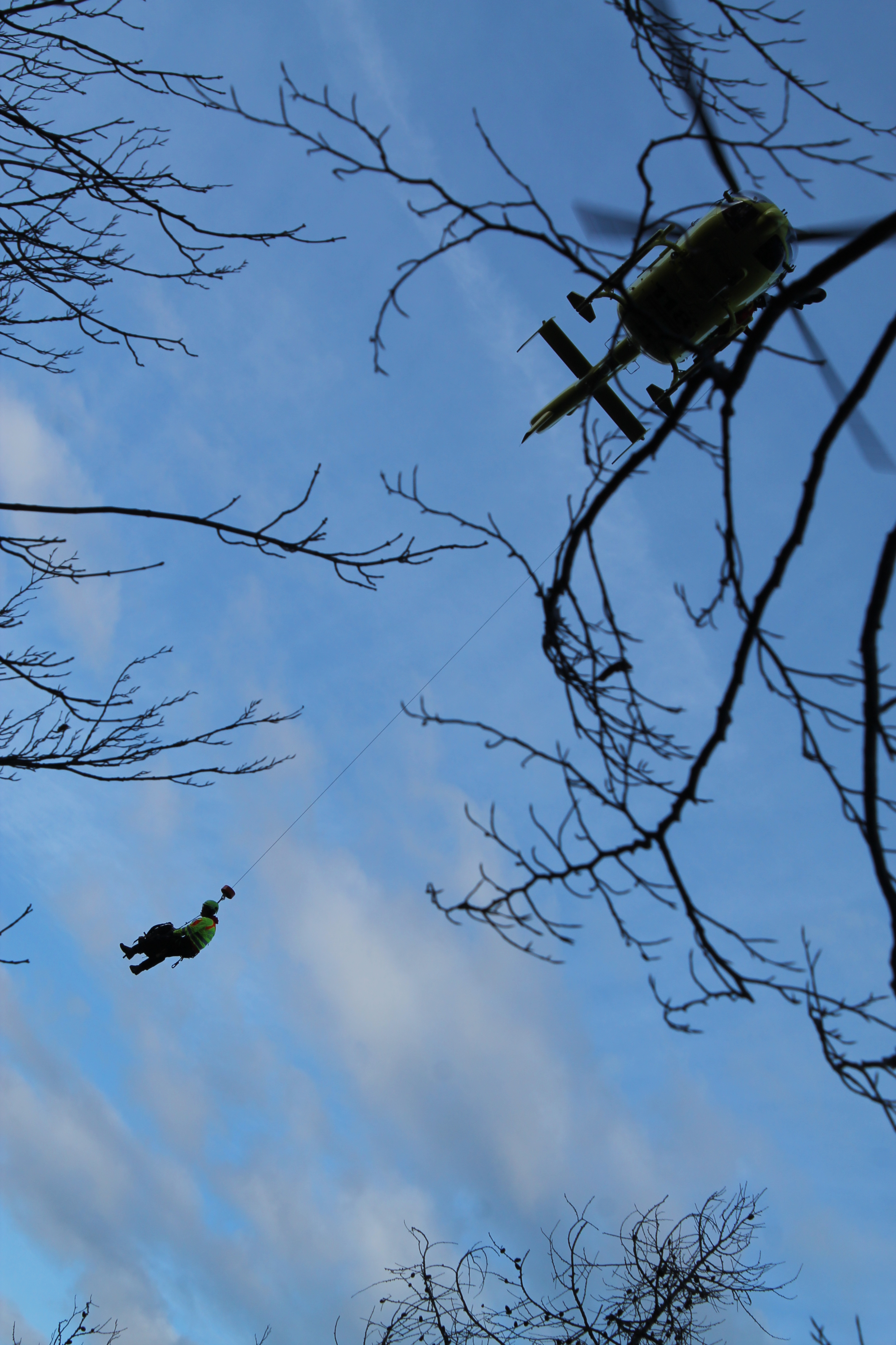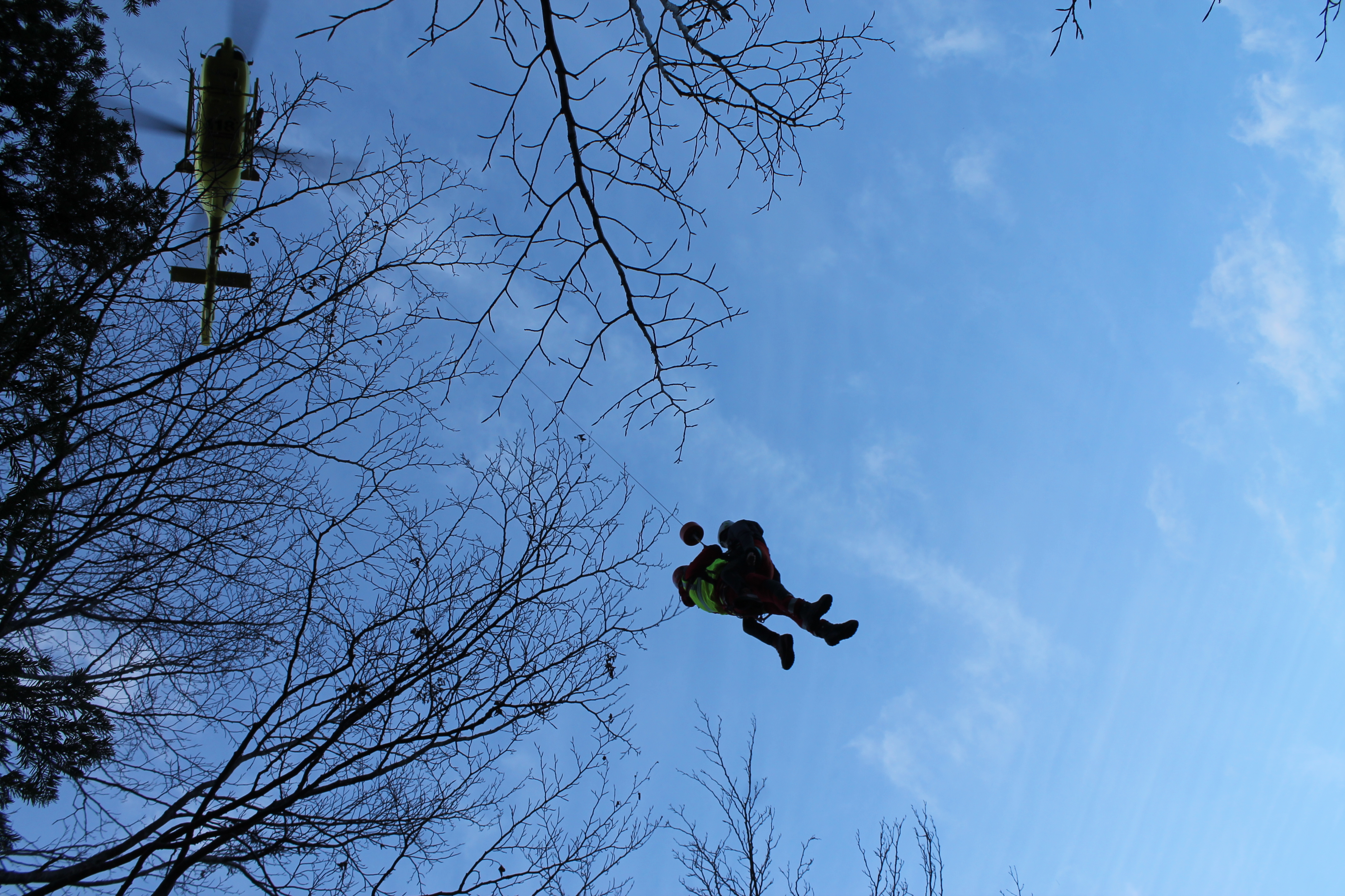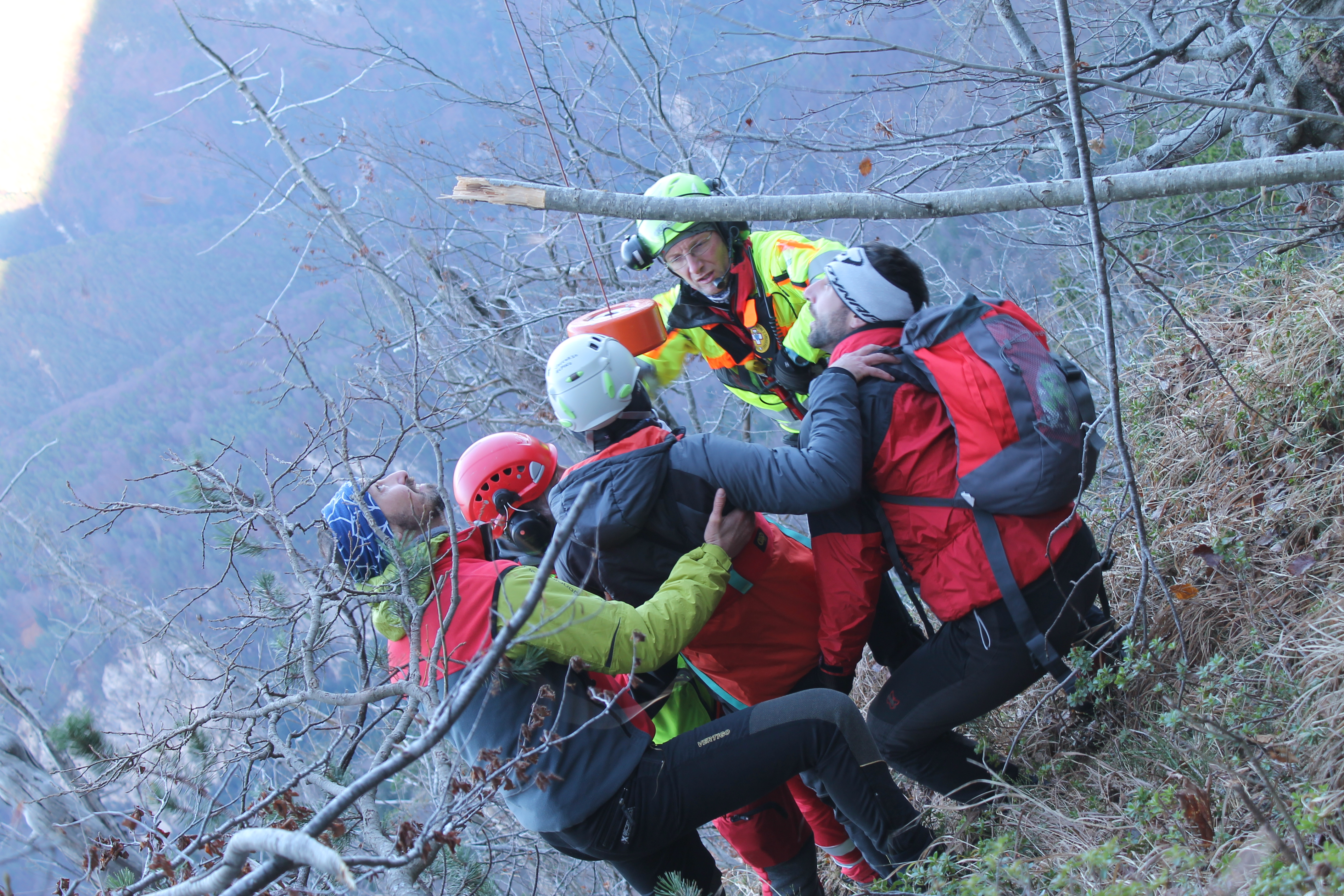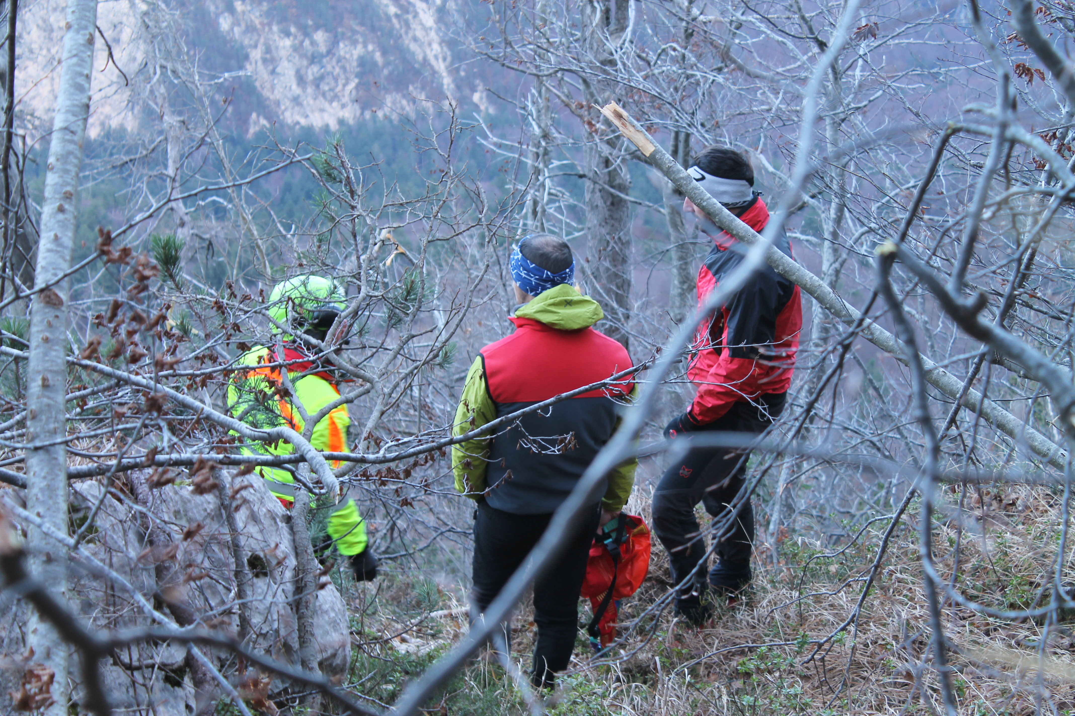 Qualifica, località, quota, situazione dell’infortunato.. Decidono secondo i loro protocolli, tempo per me e Max di disboscare un piccolo spiazzetto che il tecnico di bordo è nei pressi appeso al verricello dell’elicottero. Seguirà il medico più simile a Babbo Natale che abbia mai visto. Aiutiamo l’amico Catoblepa a percorrere la distanza che lo separa dall’imbarco, lui senza problemi, il medico con la sua esile figura se la suda alla grande.