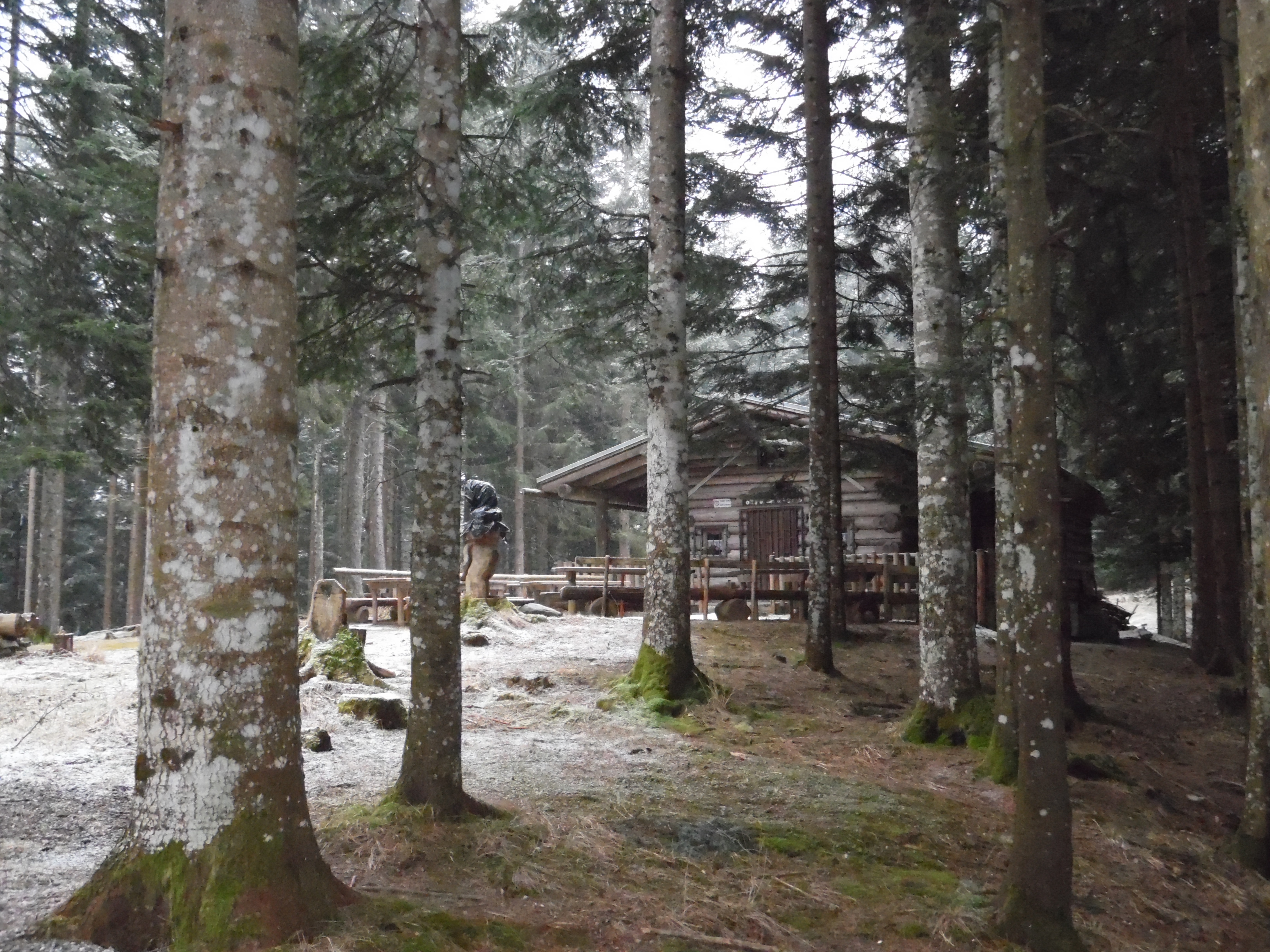 Sulla strada che sale verso il Cason di Lanza nevica a larghe falde, ci sono 3° gradi, siamo talmente attoniti che non proferiamo parola tra noi. Di salire la Nord prescelta non se ne parla nemmeno, come non è nemmeno il caso di proseguire oltre con l’autovettura. Se continua a nevicare così tornerà tutto ad imbiancarsi, ed è quasi primavera.