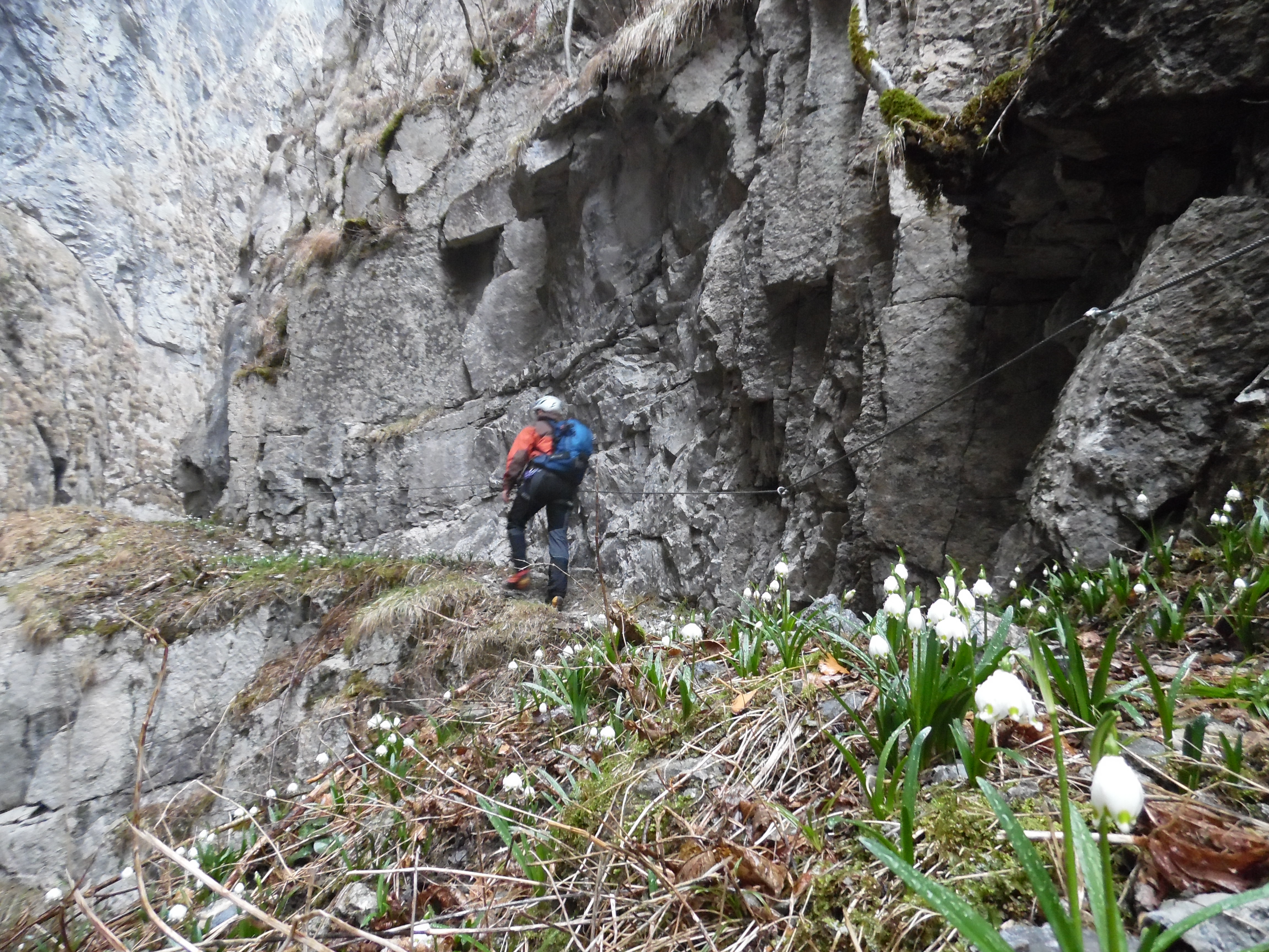 Seguiamo sulla sponda orografica sinistra i bolli del CAI, cominciano ad esserci anche dei cavi metallici di sicurezza sebbene, in pratica, superflui.