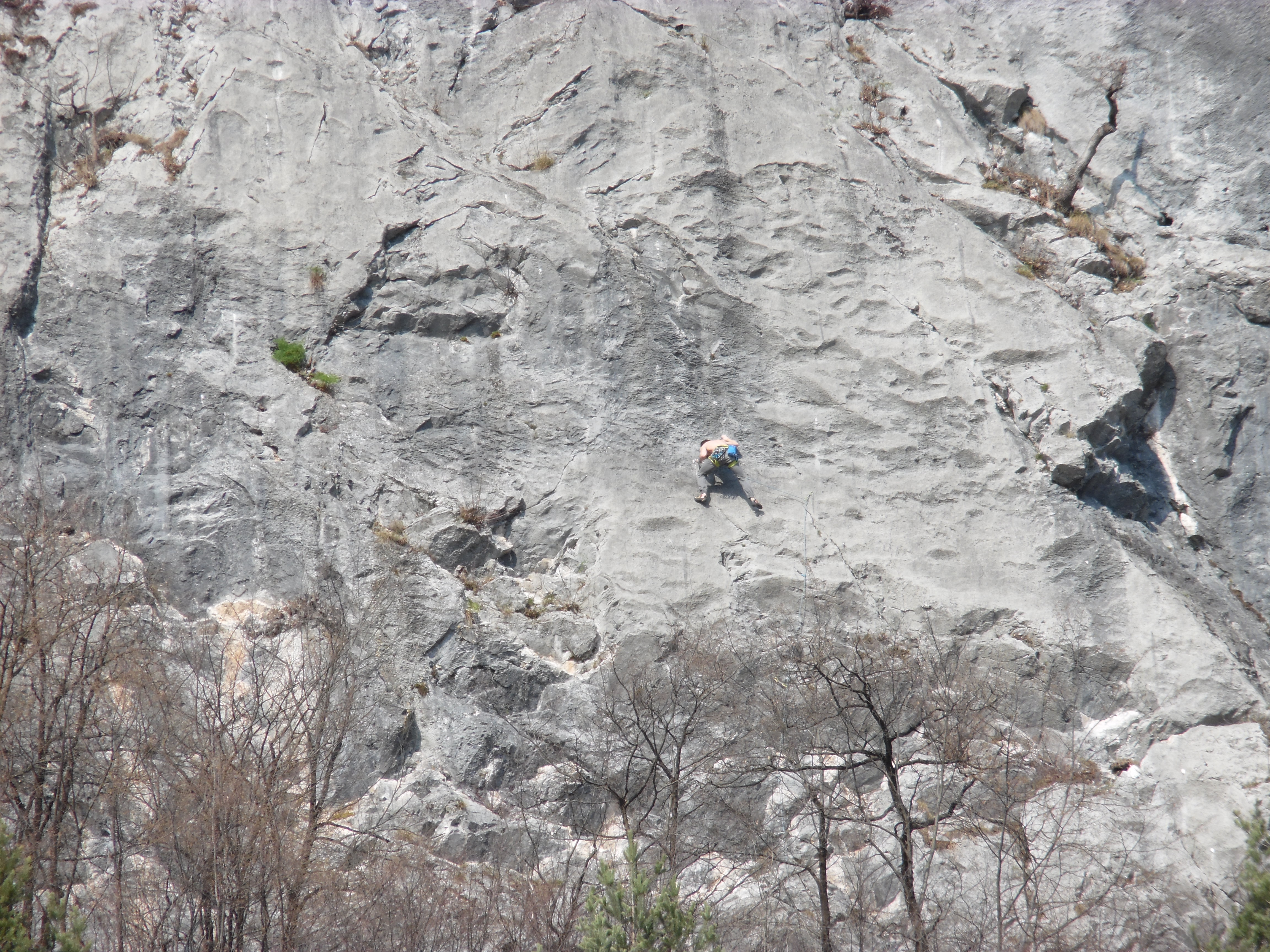 La frequentazione sempre maggiore della falesia comincia a farsi sentire, rispetto a qualche anno fa la roccia è addomesticata, non più la carta vetrata d’una volta, tuttavia ancora ben lungi dall’essere definita unta.