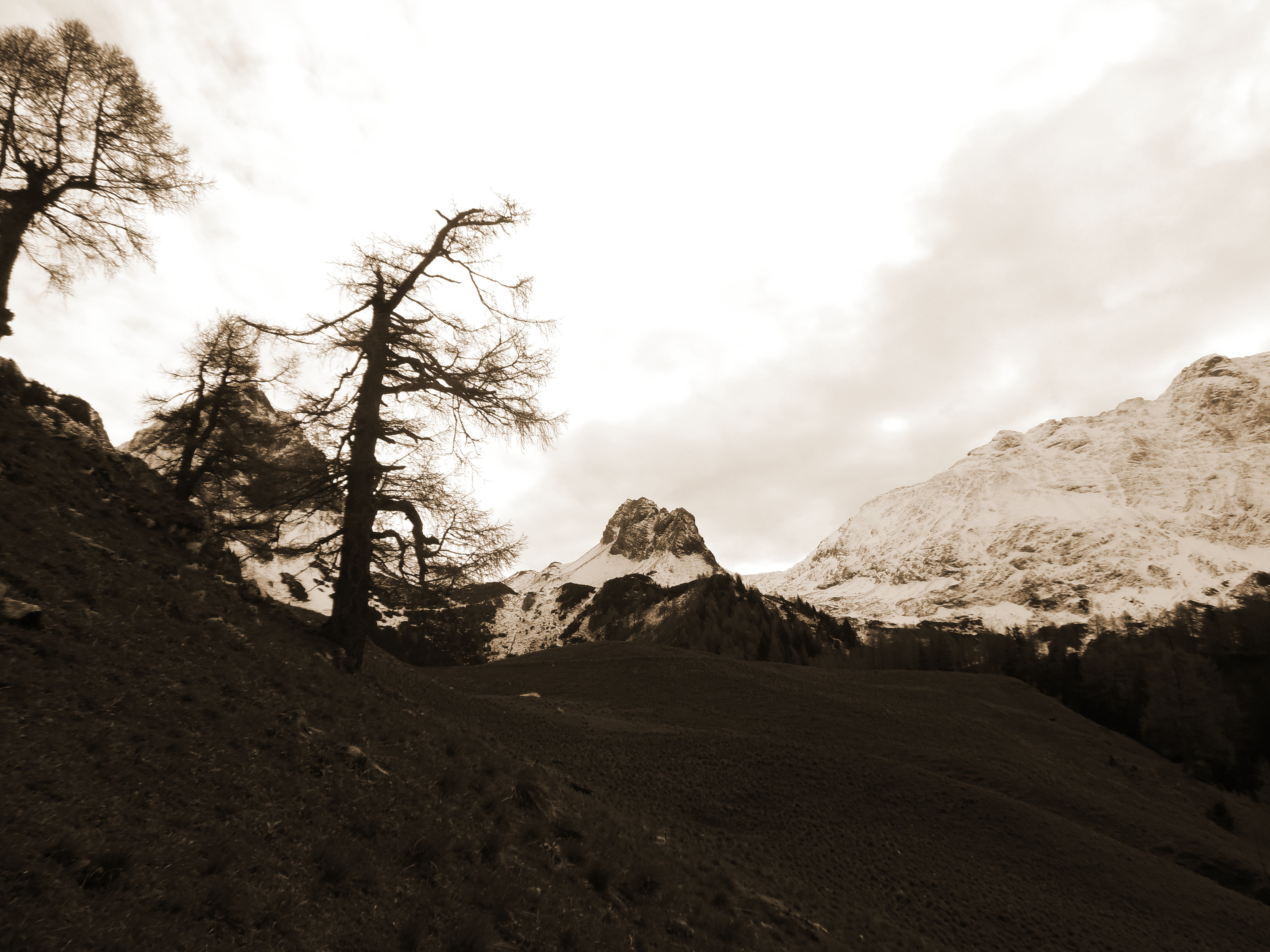 Non ricordo di averli mai visti prima, o meglio, a pensarci bene alcuni bipedi passarono in precedenza da queste parti portando sulla schiena china grosse scatole simili a dei piccoli armadi, trasportavano la loro vita in spalla e cianfrusaglie da vendere a quelli che stavano dall’altra parte, a Nord. Li chiamavano “i cramaars” – venditori ambulanti obbligati dalla miseria a lasciare la terra Natale per cercar fortuna dove la vita regalava qualche soddisfazione in più. Passarono numerosi ai miei piedi diretti tutti all’insellatura più su, dove la mia sorella grigia e tonda incontra in basso quella rossastra. Gli echi delle nostre pareti portavano voci, lamenti di fatica, ansimi e frasi stentate dette col fiato rotto. Dicevano “Pasin pal Giramondo, e dismontin par daur, viers l’Austria”.