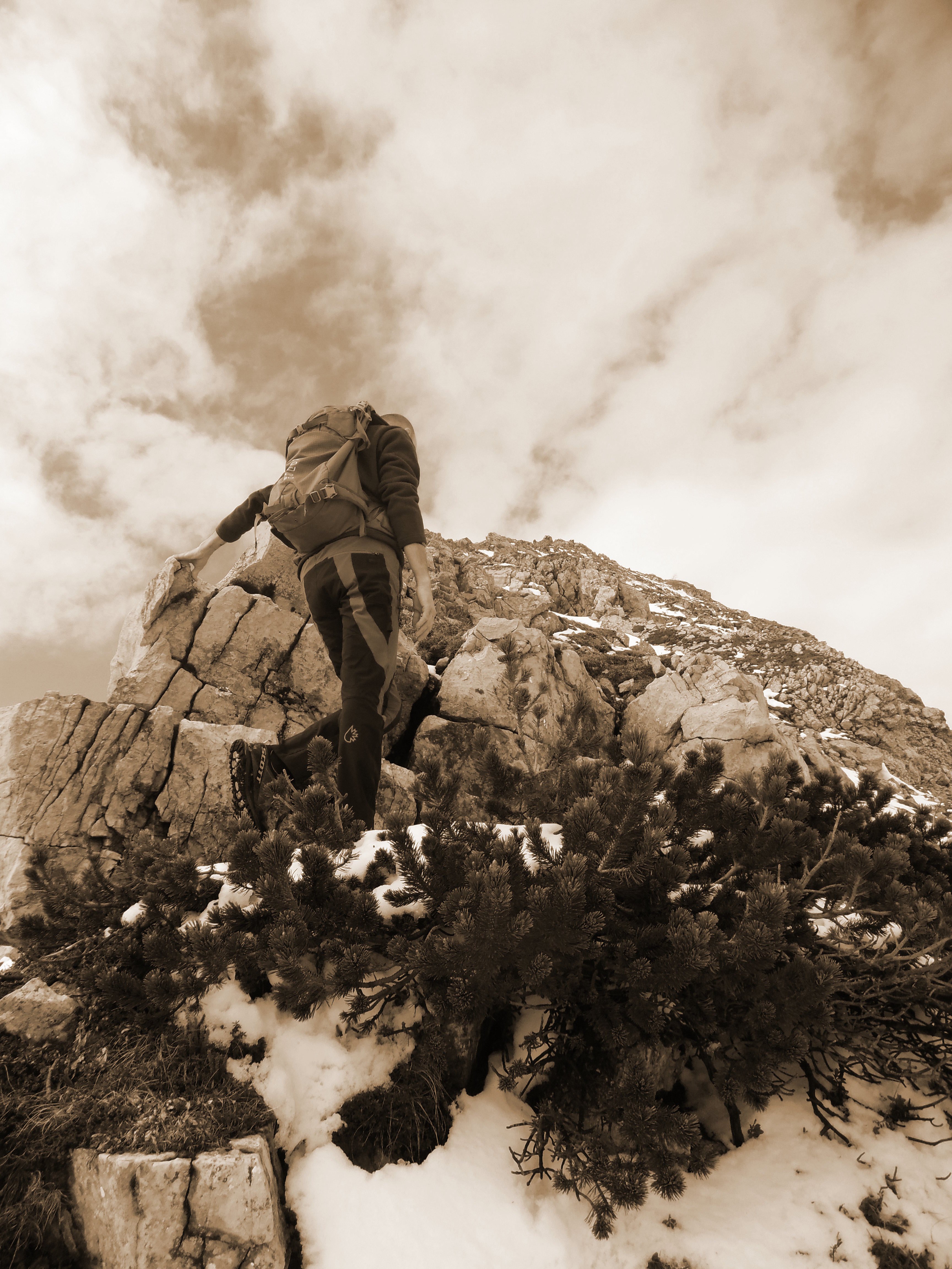 Dopo questo primo periodo di adattamento, i racconti del nonno erano tutti incentrati su una cima il cui nome mi ha sempre fatto sorridere. La chiamava “lisca di pesce”, o qualcosa del genere… Fattostà che l’azione più eroica che mio padre compì fu quella di conquistarne la cima attraverso la parete più disagevole, quella del versante italiano. Glielo ordinarono sapendo che era un discreto cacciatore. Lo scopo dell’azione era di osservare gli spostamenti avversari al vicino varco di accesso alla zona. Il nesso tra cacciatore ed alpinista non l’ho mai capito, ma pare che quella volta le due cose andassero a braccetto.