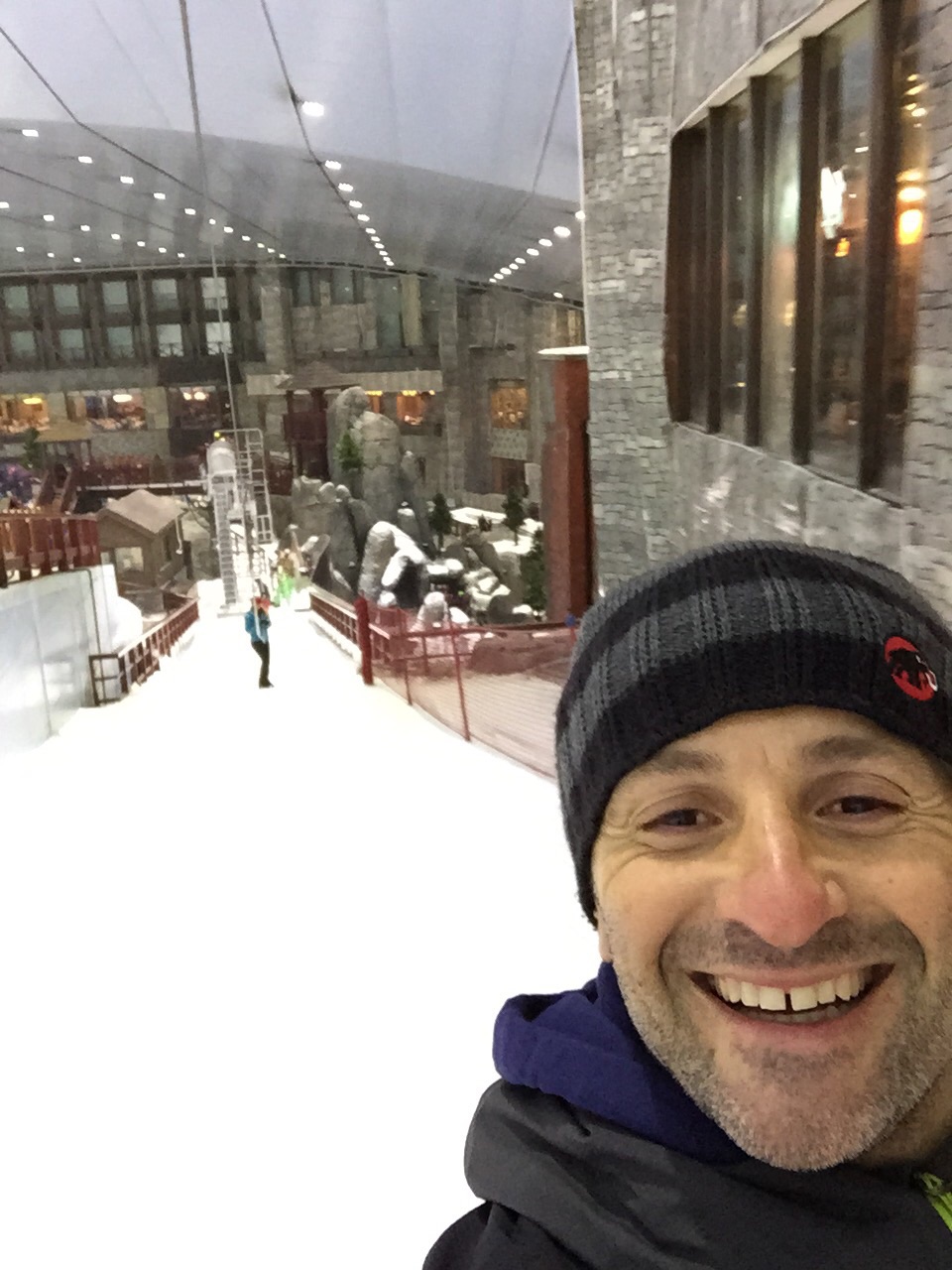 Lo sci si fa condurre bene, solette e lamine sono perfette, gli scarponi un po’ meno, sono un po’ troppo larghi, ma devo dire che questa esperienza, alla fine, si rivela una piacevole sorpresa. Strana, ma piacevole. Anche l’aria fredda in faccia è una bella sensazione, quasi dimenticata nell’agosto emiratino, a chiudere gli occhi sembrerebbe di stare in altri posti, magari a 46 gradi di latitudine nord o giù di li, e non nel savalon. Alla fine ti rendi conto che le cose che dai per scontate, tanto scontate poi non sono. E anche un tubo di cemento in mezzo al deserto, anche se per due ore, ti riporta verso casa.