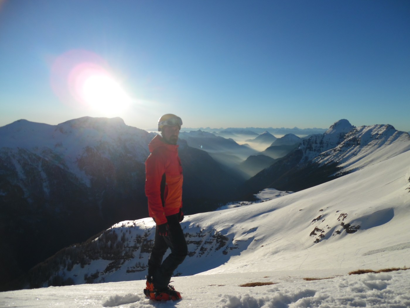 Poteva passare come una delle tante giornate che da vecchio non ricorderai mai, confusa in una girandola fatta di altrettante giornate simili. Ed invece, probabilmente, la ricorderò come quella volta che salii e scesi la Forcella Riomoz, piccola perla incastonata sulle propaggini del Buinz. Con un caldo invernale che sembrava primavera, con una solitudine amplificata dall’ora tarda e dal sole nascosto su in alto dietro alla cornice di Riomoz. In compagnia di un amico con cui ne ho passate tante e credo altrettante ne passerò in futuro.