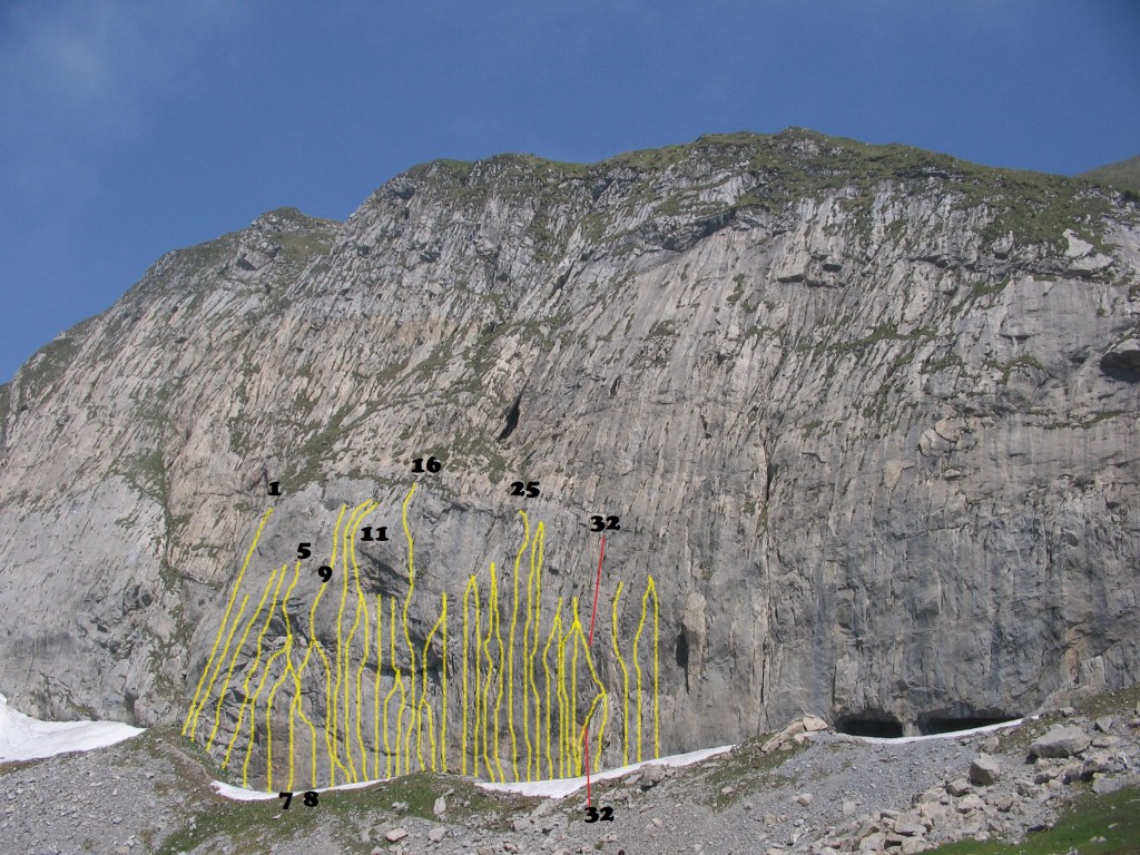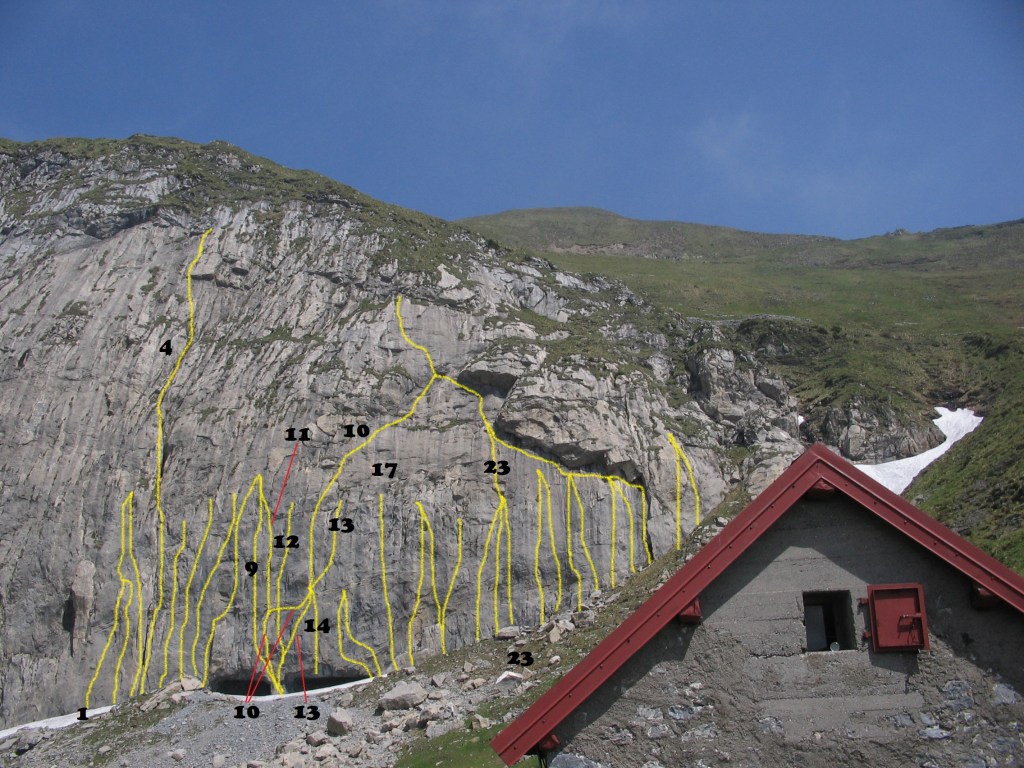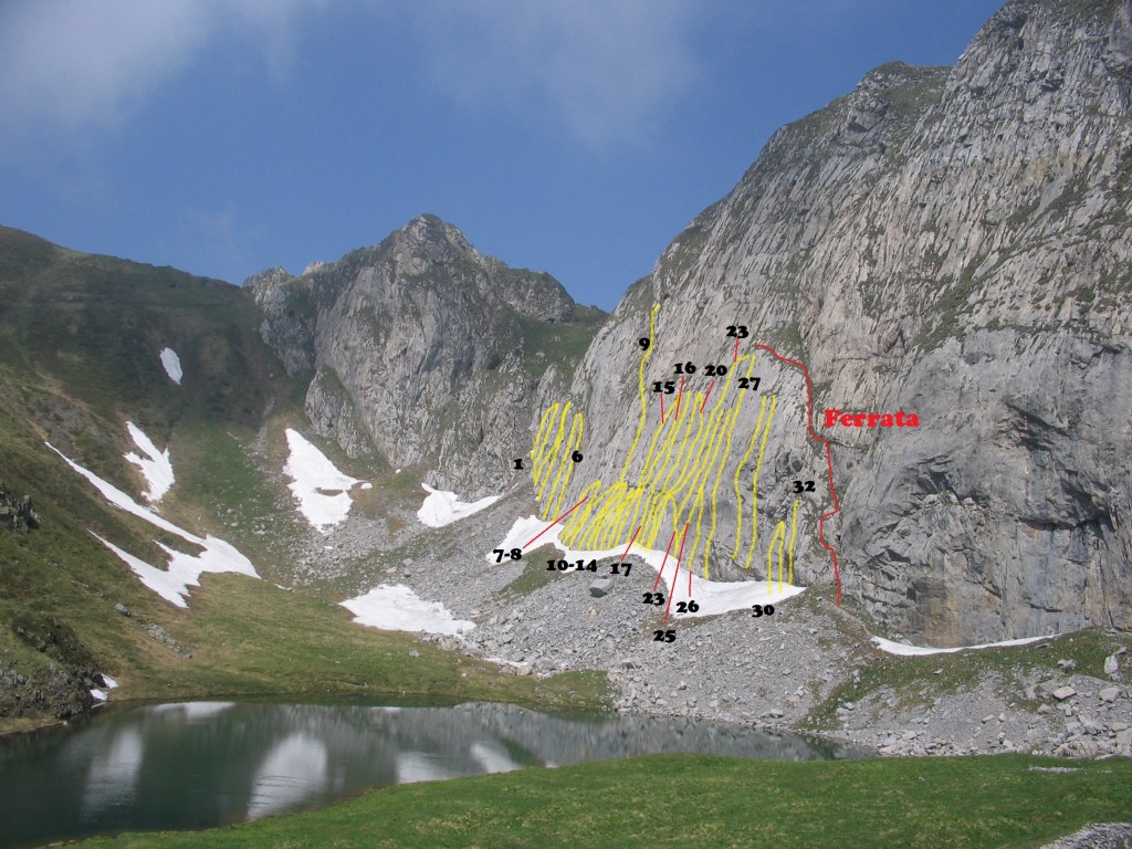 Accesso: l’accesso alla falesia, una delle più belle dell’intero Friuli, avviene in automobile fino a Malga Pramosio (raggiungibile con strada sterrata – ma percorribile con qualsiasi automobile – dall’abitato di Laipacco, frazione di Paluzza). Dal parcheggio della malga seguire verso N la strada che raggiunge la splendida conca del lago di Avostanis e della malga Pramosio Alta. La falesia si specchia nelle acque del lago.