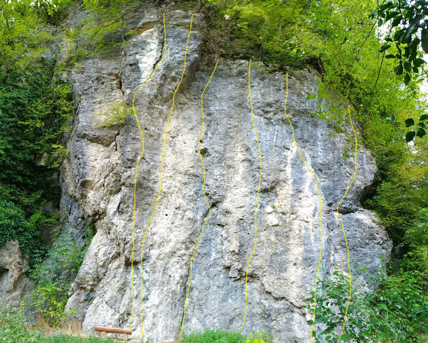 Accesso: dal parcheggio dell’Hotel Saustri a Priola di Sutrio scendere su strada asfaltata verso la frazione di Noiaris. In corrispondenza della curva prima di un ponte, sulla sinistra, una mulattiera in discesa porta a passare nei pressi di un vecchio stavolo e, mantenendo la sinistra, a raggiungere la falesia. Tempo totale 10min
