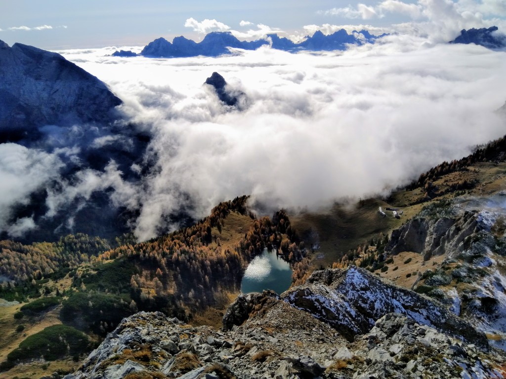 Saliamo quindi oggi alla volta di una delle mete più in voga delle cime carniche. Un contesto di punte grigie che sovrastano dorsali rossastre, su bacini ininterrotti di praterie e mughete. E due gocce d’acqua spettacolari.