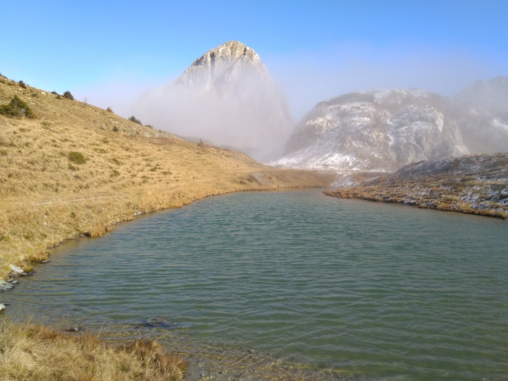 Da quassù guardo quello che mi circonda e non posso esimermi dal pensare che se fossi stanco un giorno di camminare alture mi fermerei in quel posto dove gli occhi non sono mai stati saziati da quell’intorno. Mi siederei su di un sasso in riva al mare della tranquillità, a contare gli aghi dei larici che in cielo si stringono ai primi fiocchi dell’inverno.