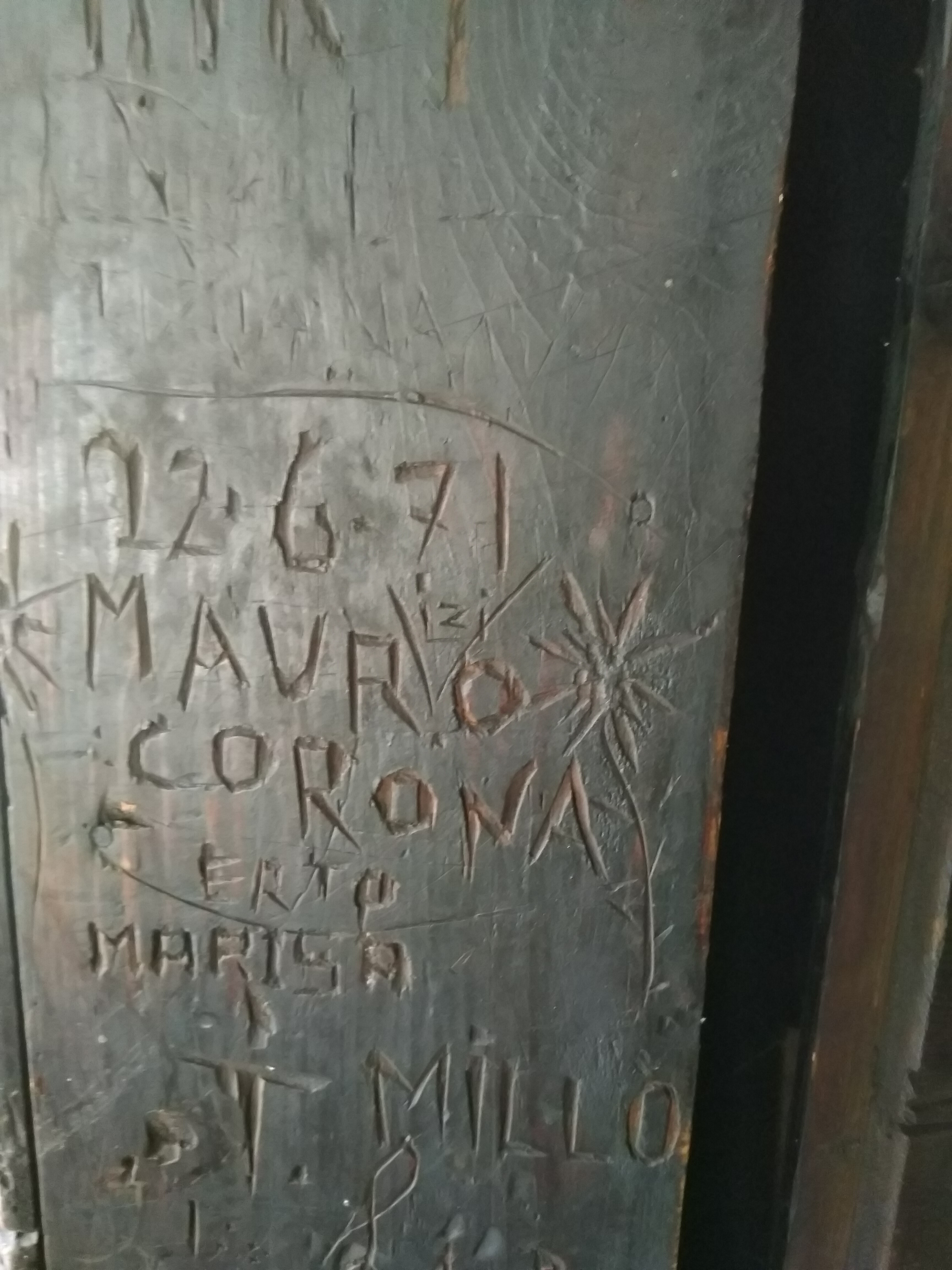 Incisioni di chi ha passato qui la stagione dell’alpeggio. La Carnia, profonda, è anche questo: spazi di silenzi attorniati da boschi che la notte parlano. L’ ho vissuto anche io al rifugio De Gasperi, ed è un regalo che pochi possono ricevere. Gli animi più sensibili poi, quei suoni e quelle sensazioni uniche, le mettono sulla punta della loro penna. Anche Mauro Corona passò a Malga Malins, chissà se in uno dei suoi libri qualche anima di questi monti è diventato racconto?