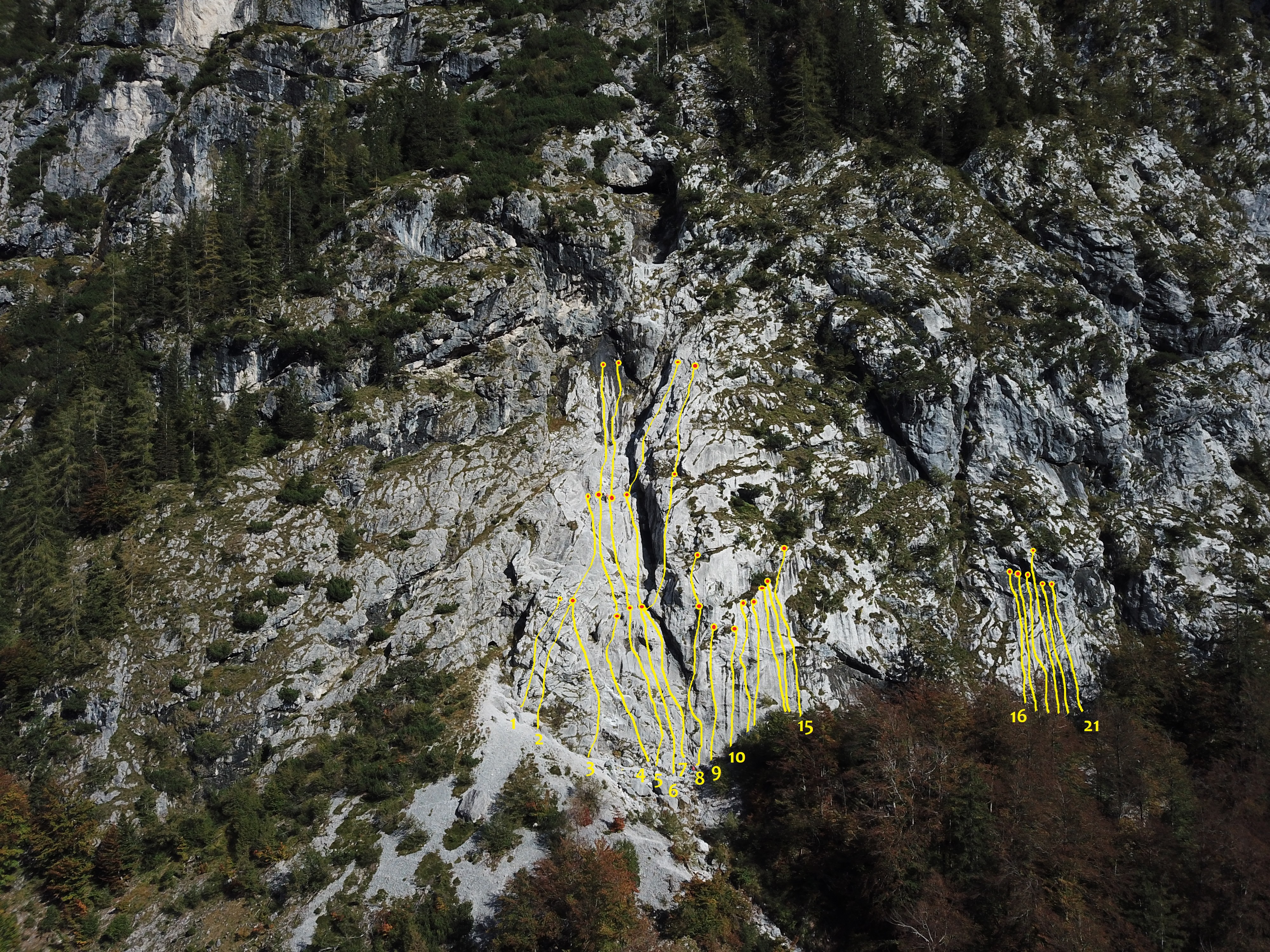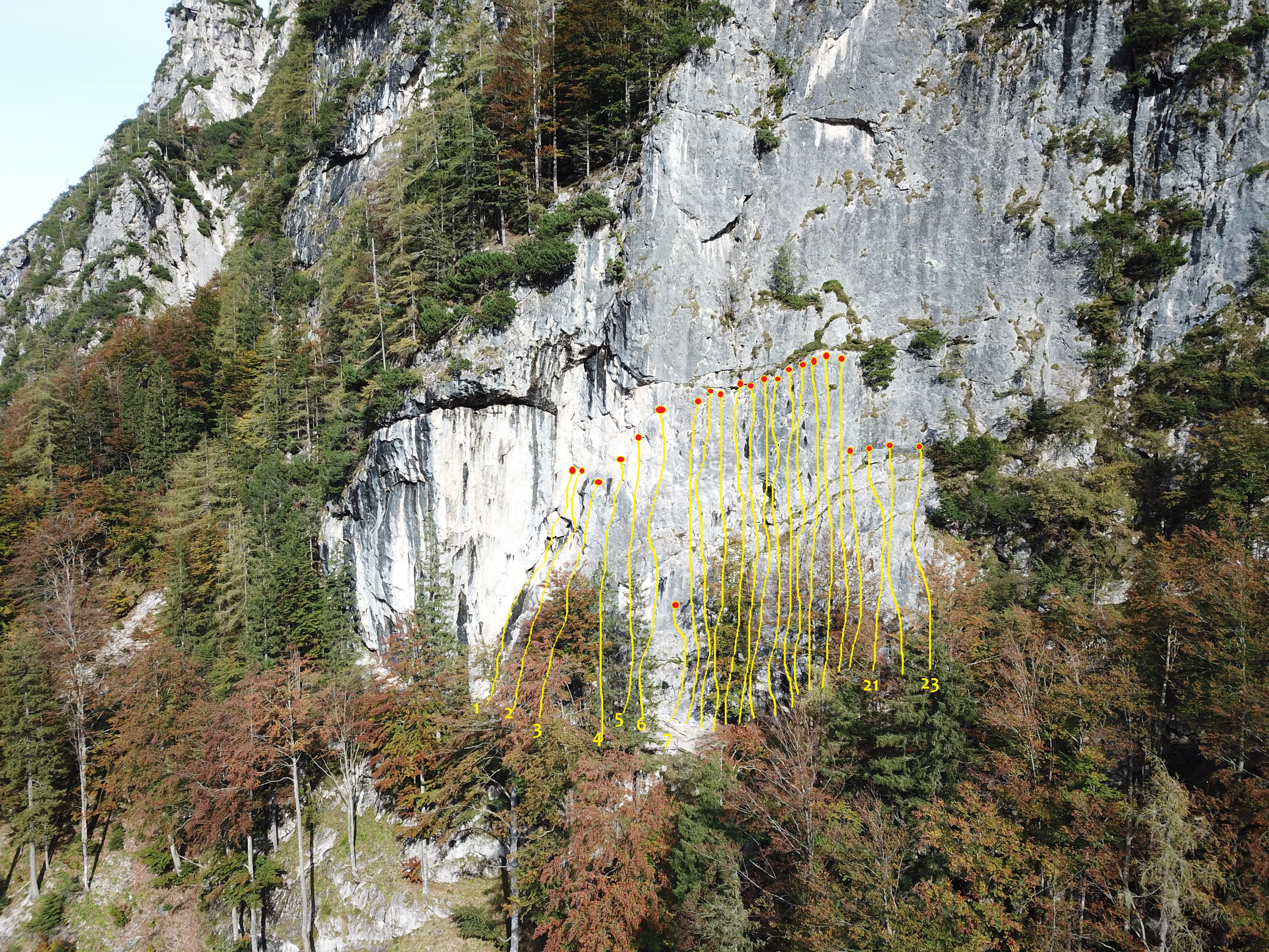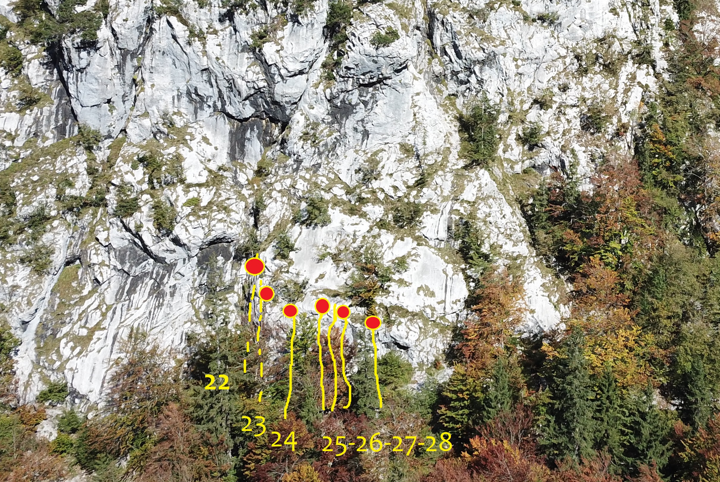 Note: Falesie realizzate dagli alpini della brigata Julia. Entrambi i settori sono adagiati nel fondovalle della Val Romana, location estremamente tranquilla ed apprezzabile per il magnifico ambiente alpino.