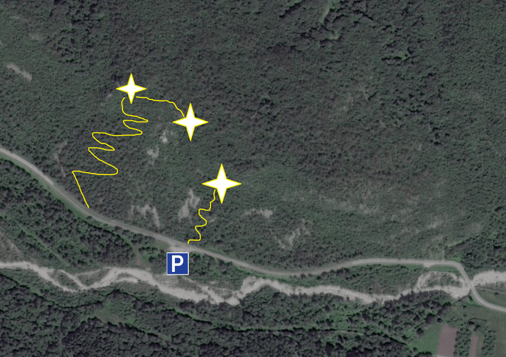 Accesso: da Tolmezzo sulla S.S. 52 in direzione di Villa Santina e quindi verso l’abitato di Raveo. Oltrepassato il secondo ponte, dopo l’abitato di Esemon di sopra, poche centinaia di metri oltre si rinviene un grande parcheggio sulla sinistra.