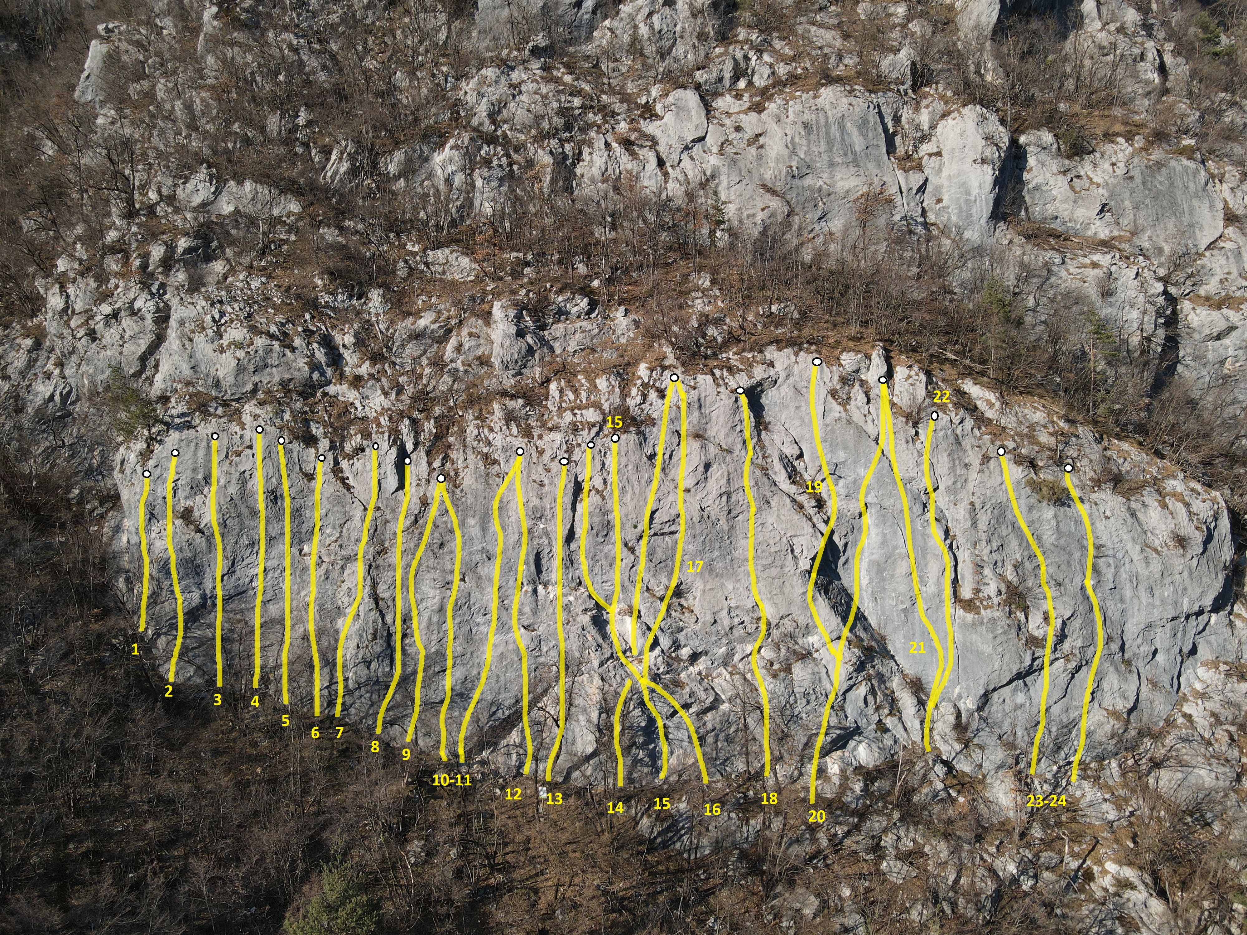 Difficoltà: Bonan dal 5A al 8B, Tacs dal 5C al 8B, Cuel di Nuvolae dal 5B al 7A+