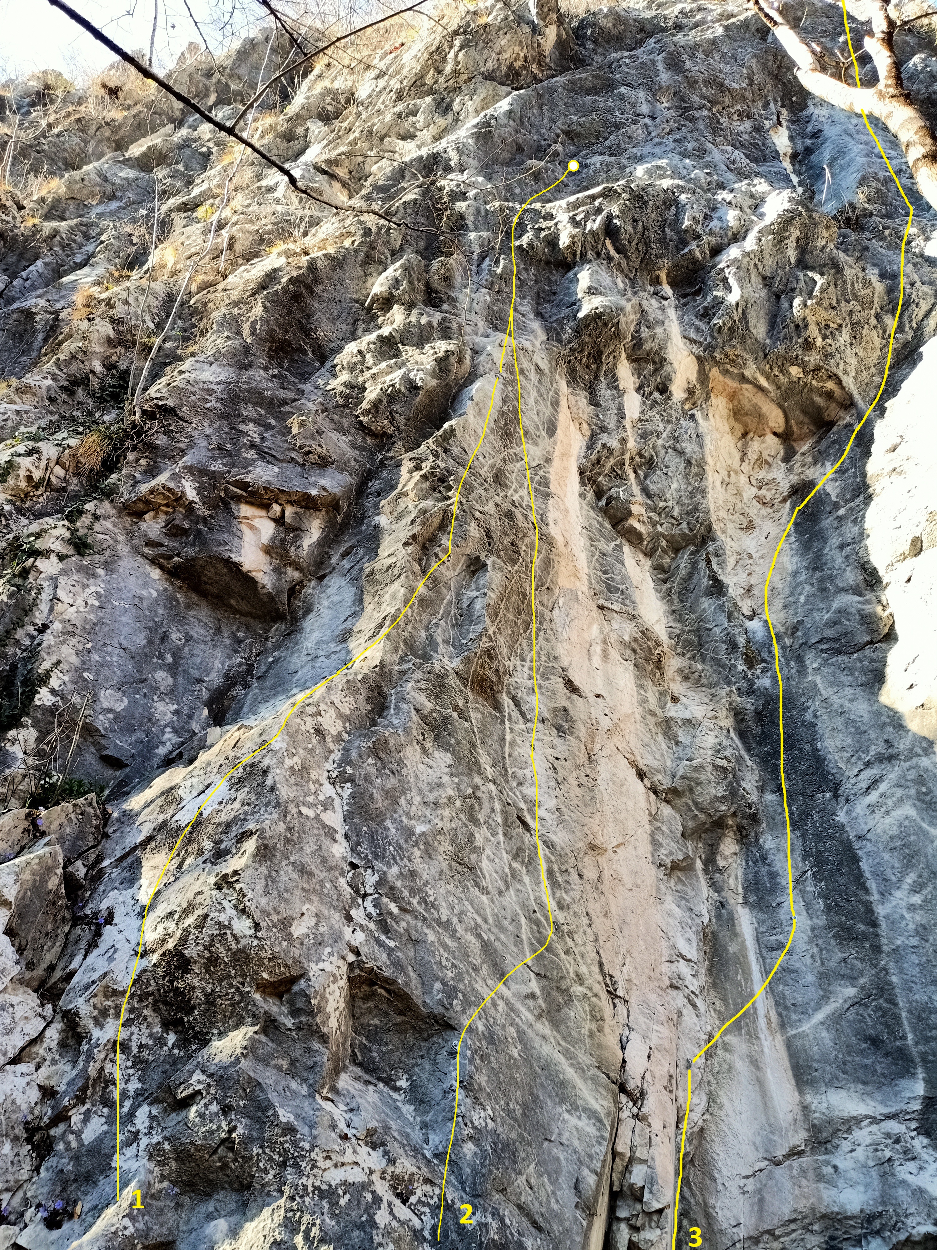 Note: Location particolare, la falesia si erge sopra un singolare avvallamento delle pendici del monte Sorantri.