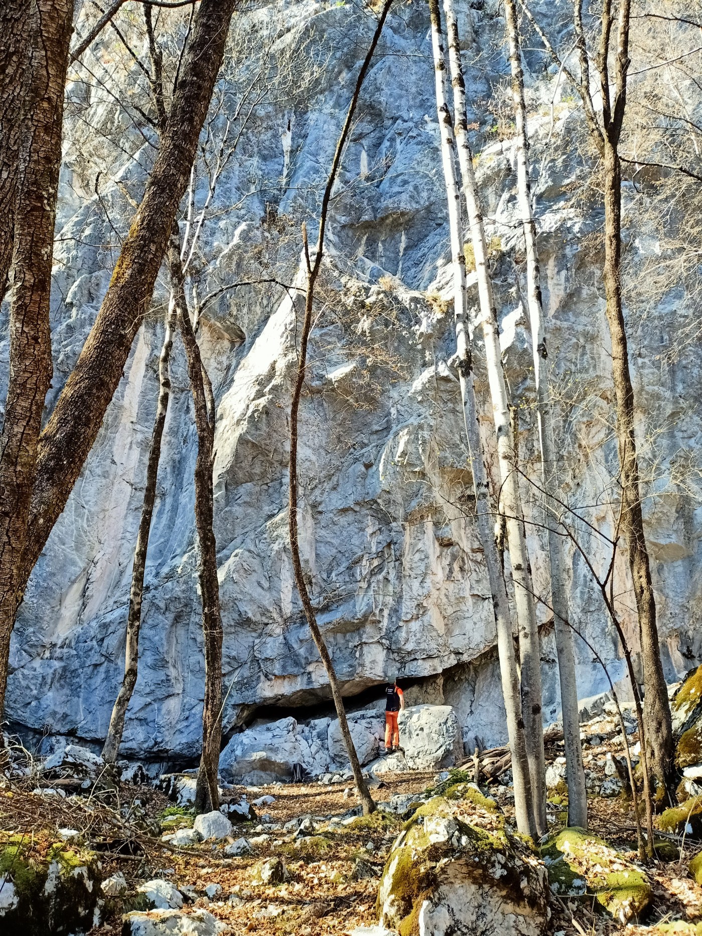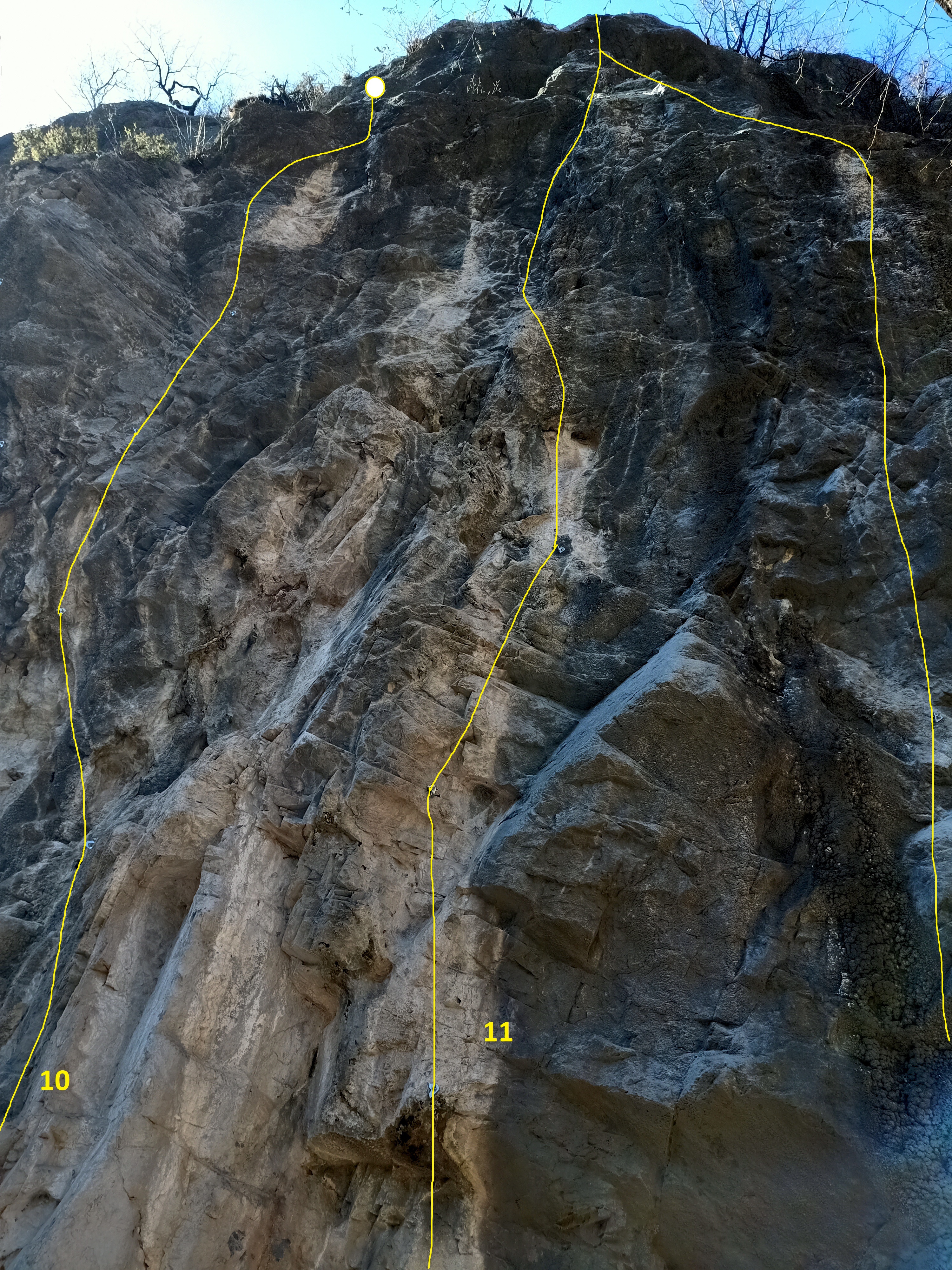 Tipo di roccia prevalente: calcare grigio compatto, parete da verticale a strapiombante
