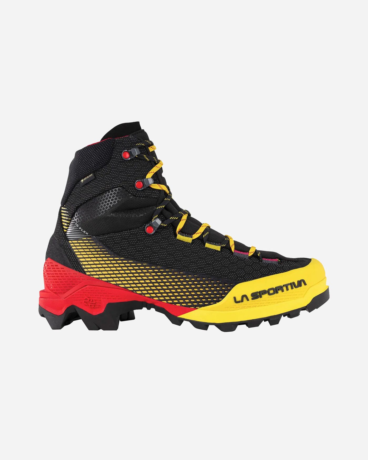Descrizione dal sito LaSportiva: Aequilibrium ST GTX è lo scarpone leggero da escursionismo tecnico ideale per vie ferrate, trekking e traversate in ghiacciaio e su terreni misti. Massimo comfort di calzata grazie alla linguella con soffietto integrato e alla ghettina paraneve morbida posta sul collarino. Eccezionale camminabilità grazie all’ innovativa costruzione del tallone Double Heel™: la geometria a doppio tassello posteriore molto pronunciato aumenta l’effetto frenante in discesa e permette una rullata più fluida riducendo l‘affaticamento muscolare. Durabilità e leggerezza convivono in armonia grazie al nuovo pacchetto suola/intersuola con costruzione a guscio Rubber Guard™ esterno e materiale espanso interno per un cushoning accentuato e leggerezza derivata da un minor utilizzo di strati di gomma. La forma è Ergonomic: avvolgente e precisa con gusci in TPU integrati in punta e tallone a rinforzo della tomaia. Lo snodo direzionale 3D Flex System Evo™ con malleolo sagomato e protezione anti-abrasione, permette un miglior controllo dell’appoggio ed una perfetta mobilità della caviglia. La ghettina di protezione dell’allacciatura in punta protegge dagli sfregamenti. L’intersuola è semi-ramponabile, la suola adotta un battistrada Vibram® SpringLug Tech con tasselli Impact Brake System per una maggior adattabilità alle superfici dure della roccia. L’alpinismo in perfetta armonia.