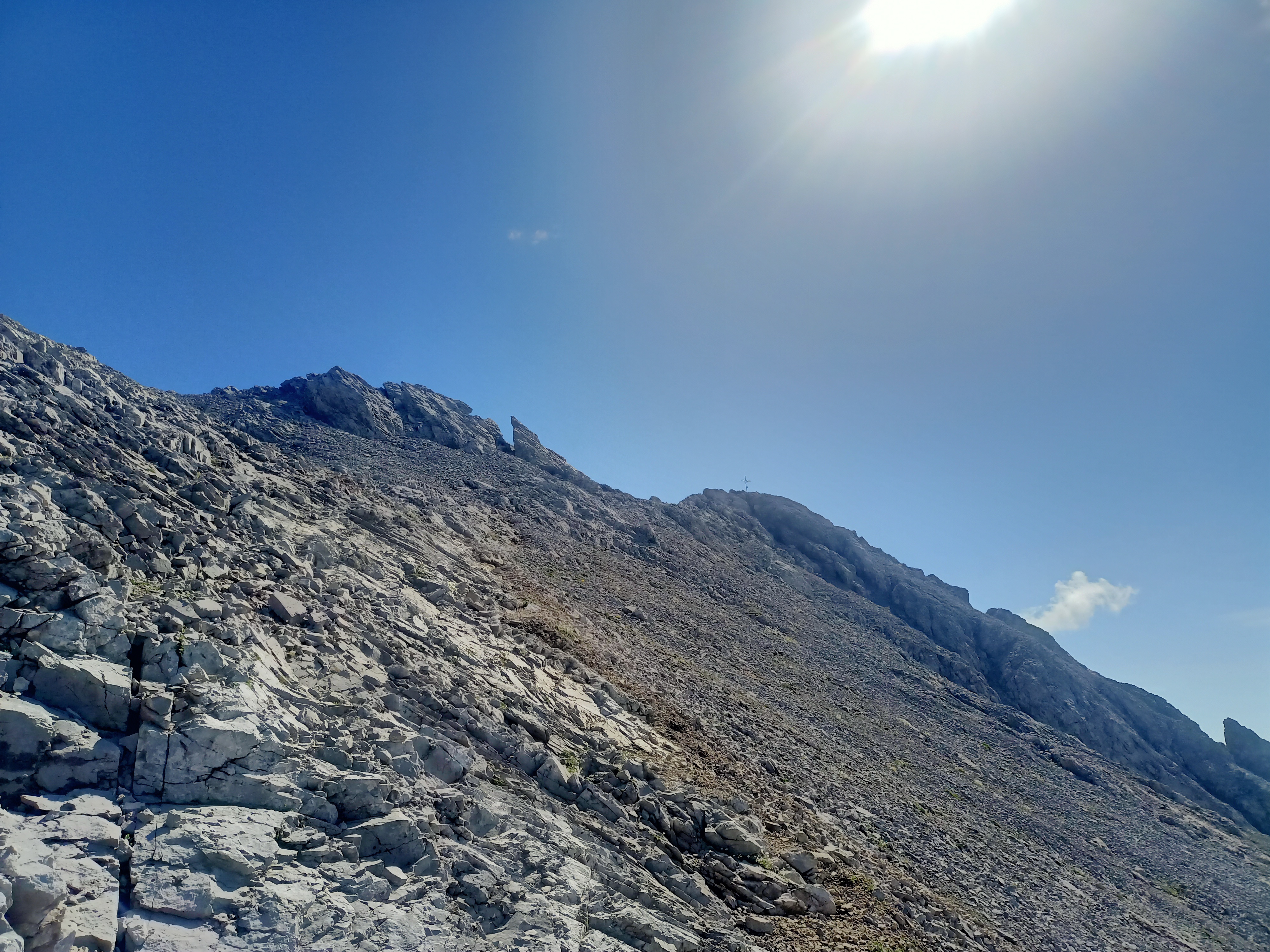 La lunga dorsale porta alla vetta solitaria e la visione dei territori attorno è tanto vasta quanto sorprendente.