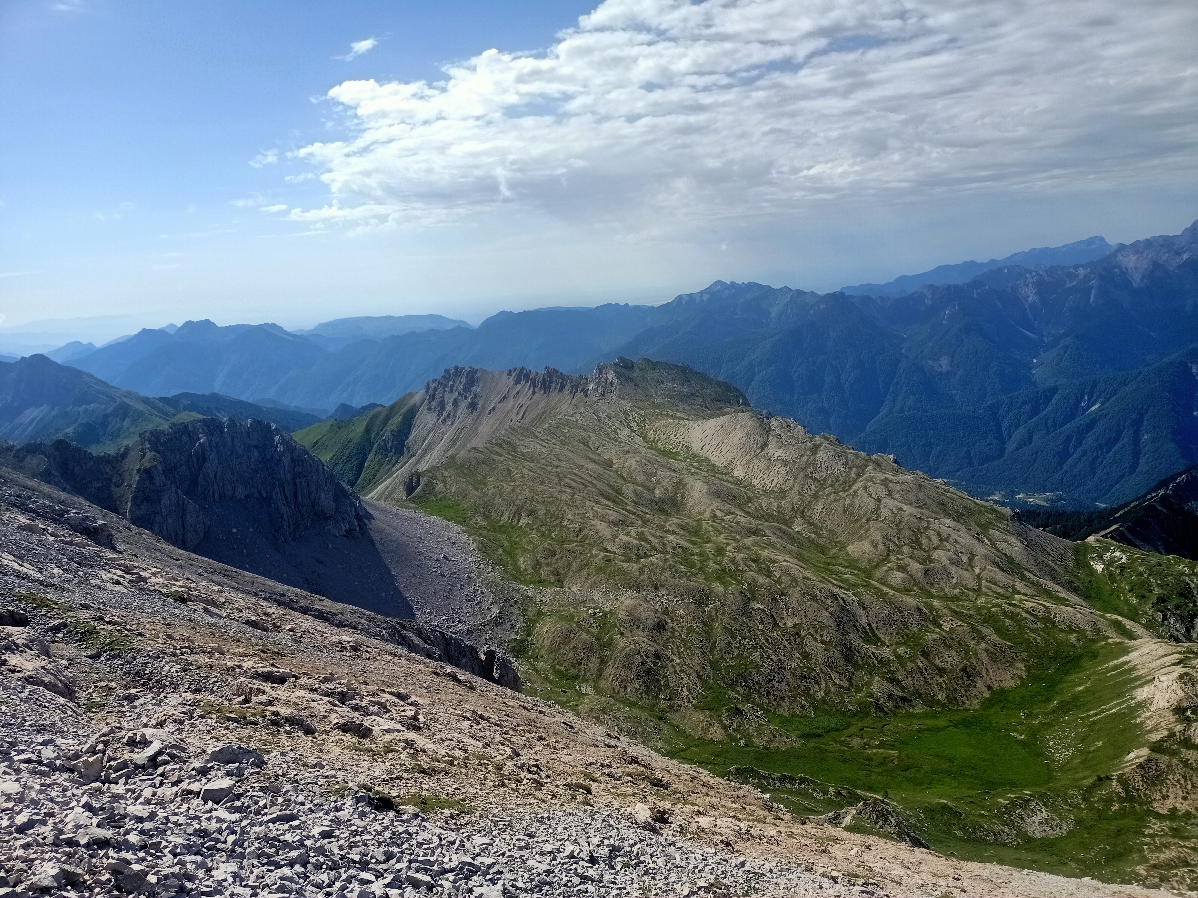 A 2000m comincia a grandinare. Accelero il passo per non finire fulminato proprio quassù. Eppure il gestore della malga mi aveva rassicurato che non avrebbe piovuto, di andare tranquillo.. E nonostante sia bagnato fino alle mutande, tranquillamente discendo il ripido ghiaione che guarda al Col delle Merende per guadagnare, lungo un sentiero che ricorda il Borneo per la vegetazione opprimente, la macchina dopo 5.30h di fantastica cavalcata alpina!