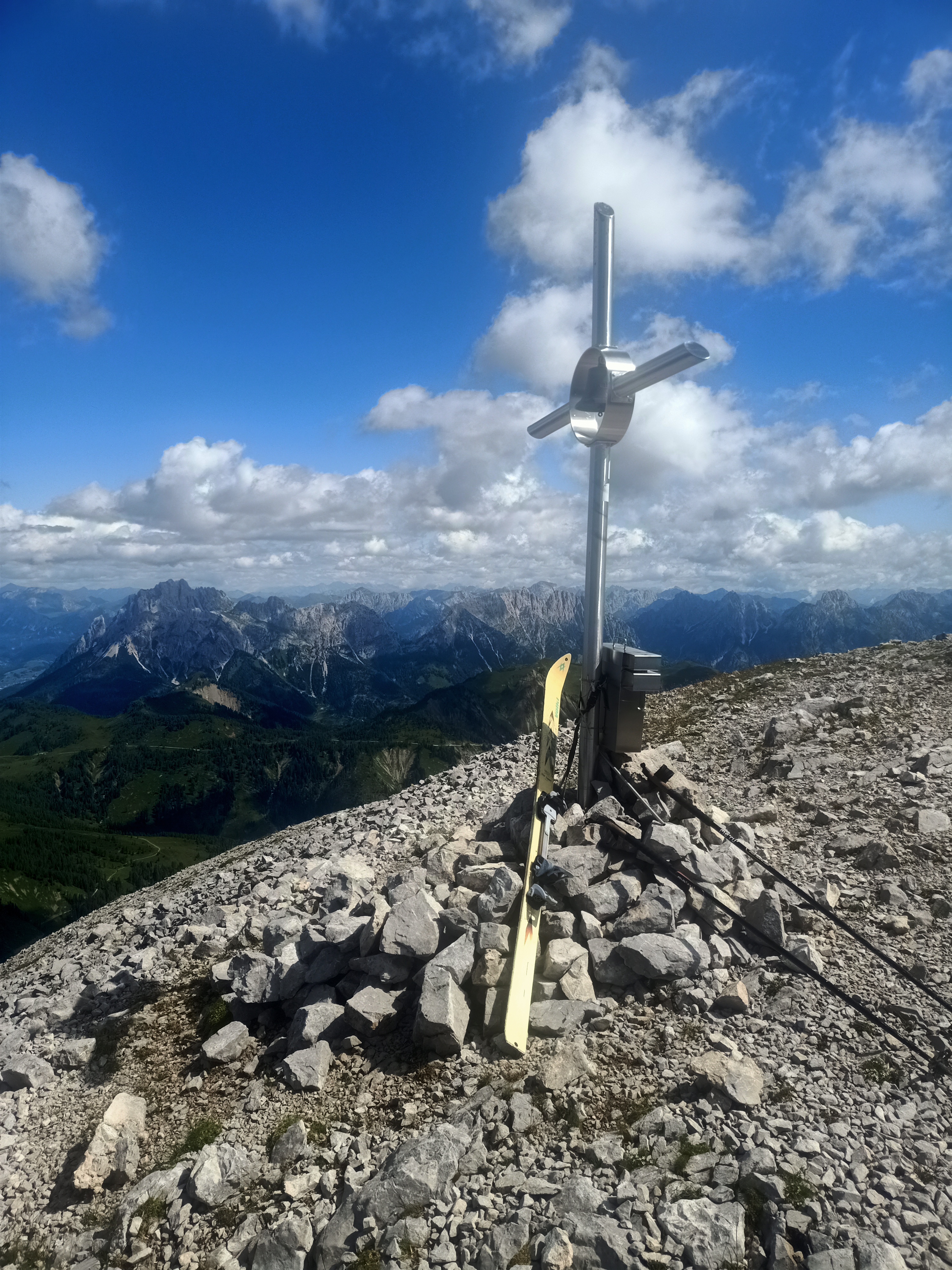 Scendo alla forcella e proseguo verso il Clap Savon. Il percorso è facile e in un paio di punti agevolato da una corda fissa che aiuta la percorrenza. La cima è una lunga dorsale arrotondata che guarda alla conca di Forni di Sopra. Caratteristica nella sua sagoma di neve, quest’inverno l’ho studiata a lungo dalle piste del Varmost. La discesa segue le linee delle ghiaie verso occidente, in direzione di quella forcella Cjansaveit che divide l’universo del bosco da quello delle sterili rocce di quassù.