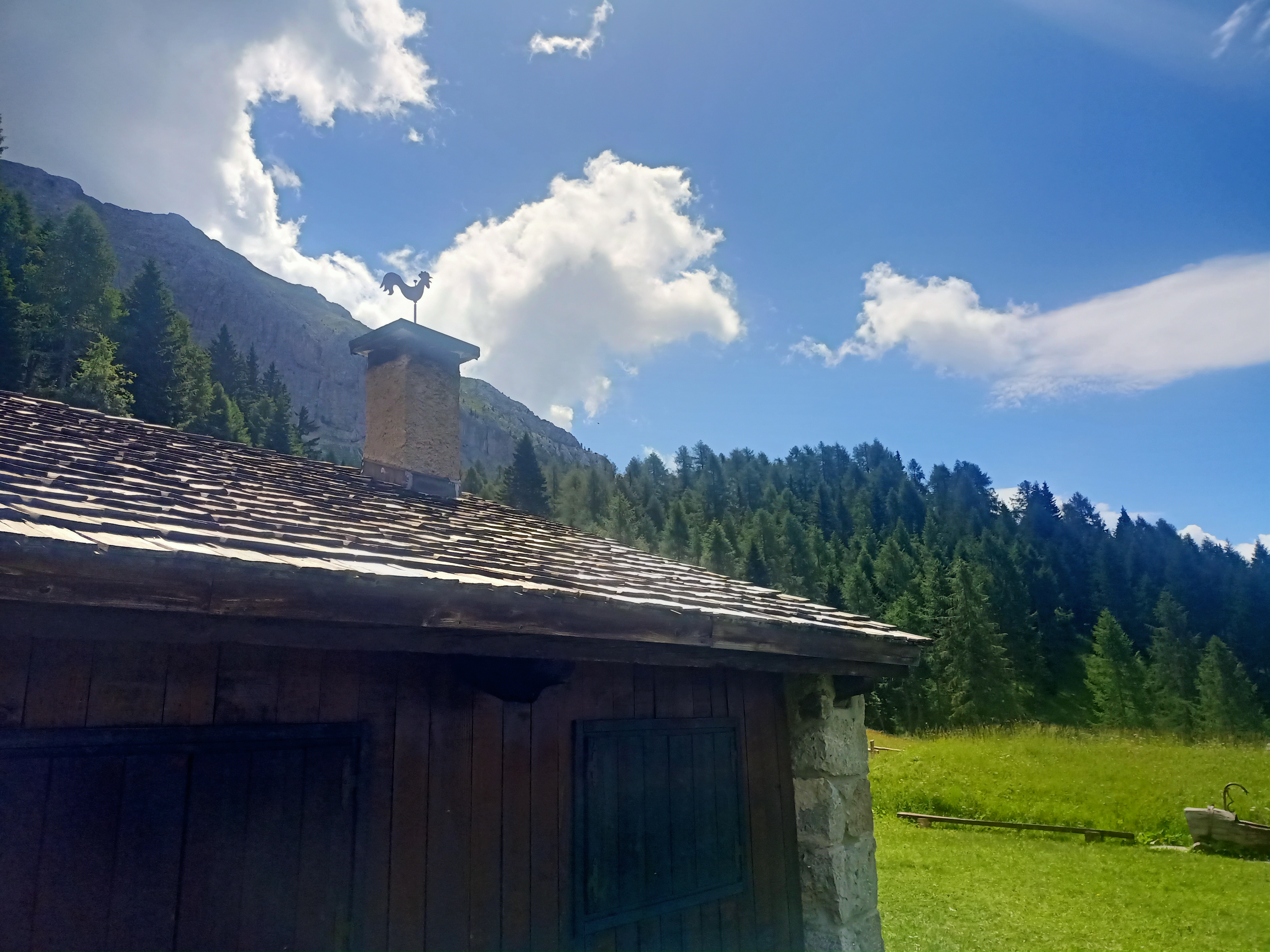 Casera Cjansaveit è uno spazio dove gli alpini hanno recuperato gran parte di una struttura che, altrimenti, sarebbe finita in malora. E lo hanno fatto in una maniera egregia, addobbando la malga con fiori freschi, intonaci nuovi, pulizia e prato tagliato. La cura e la passione che certe persone mettono in questa “missione” è ammirevole e genuina.