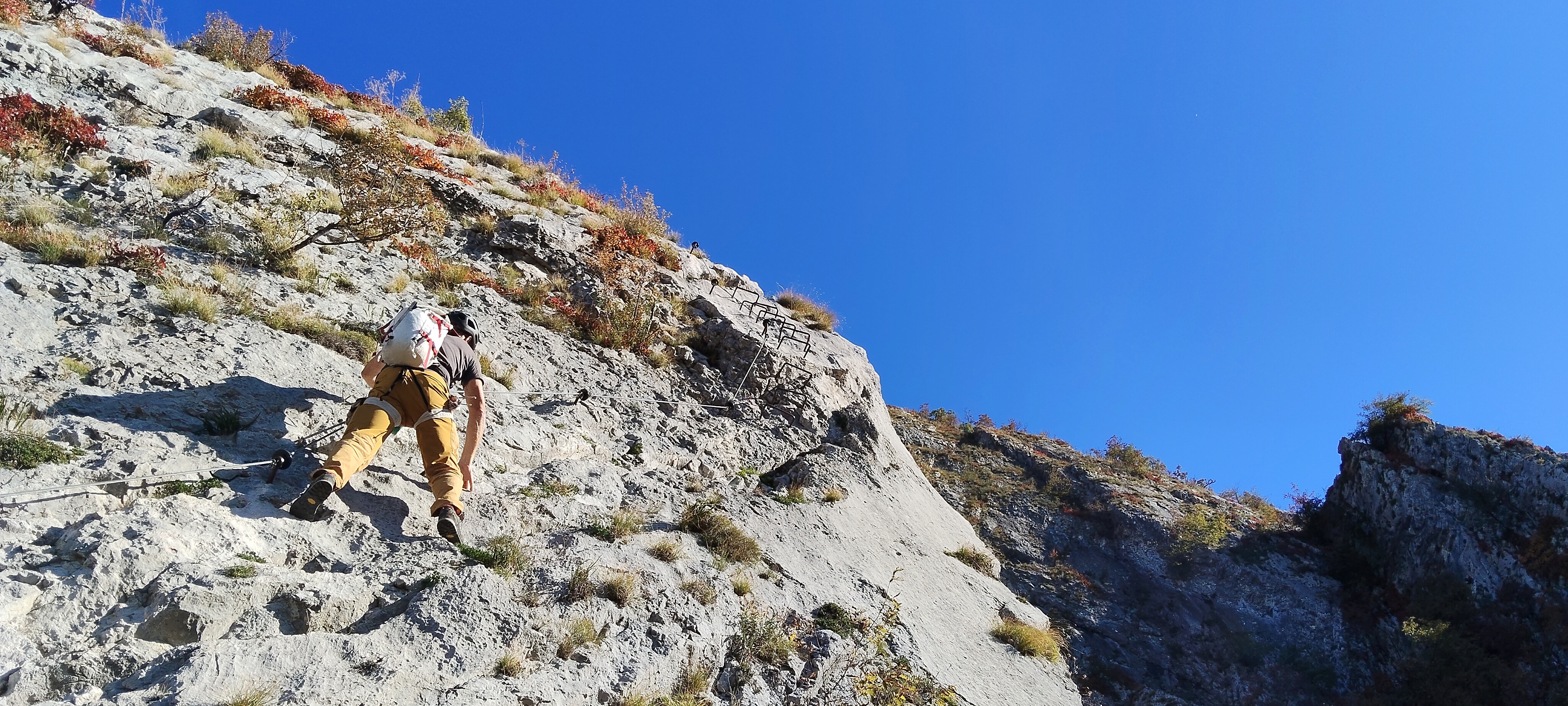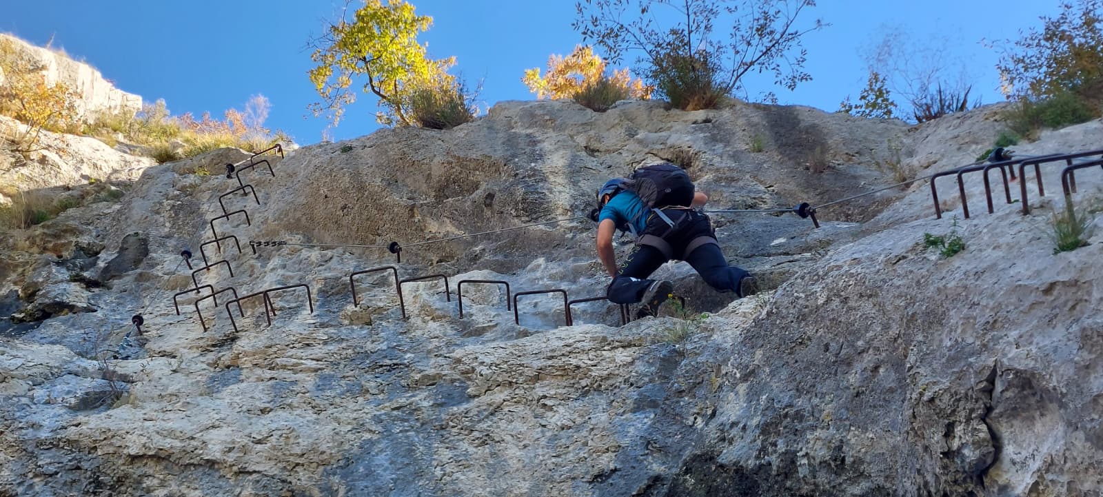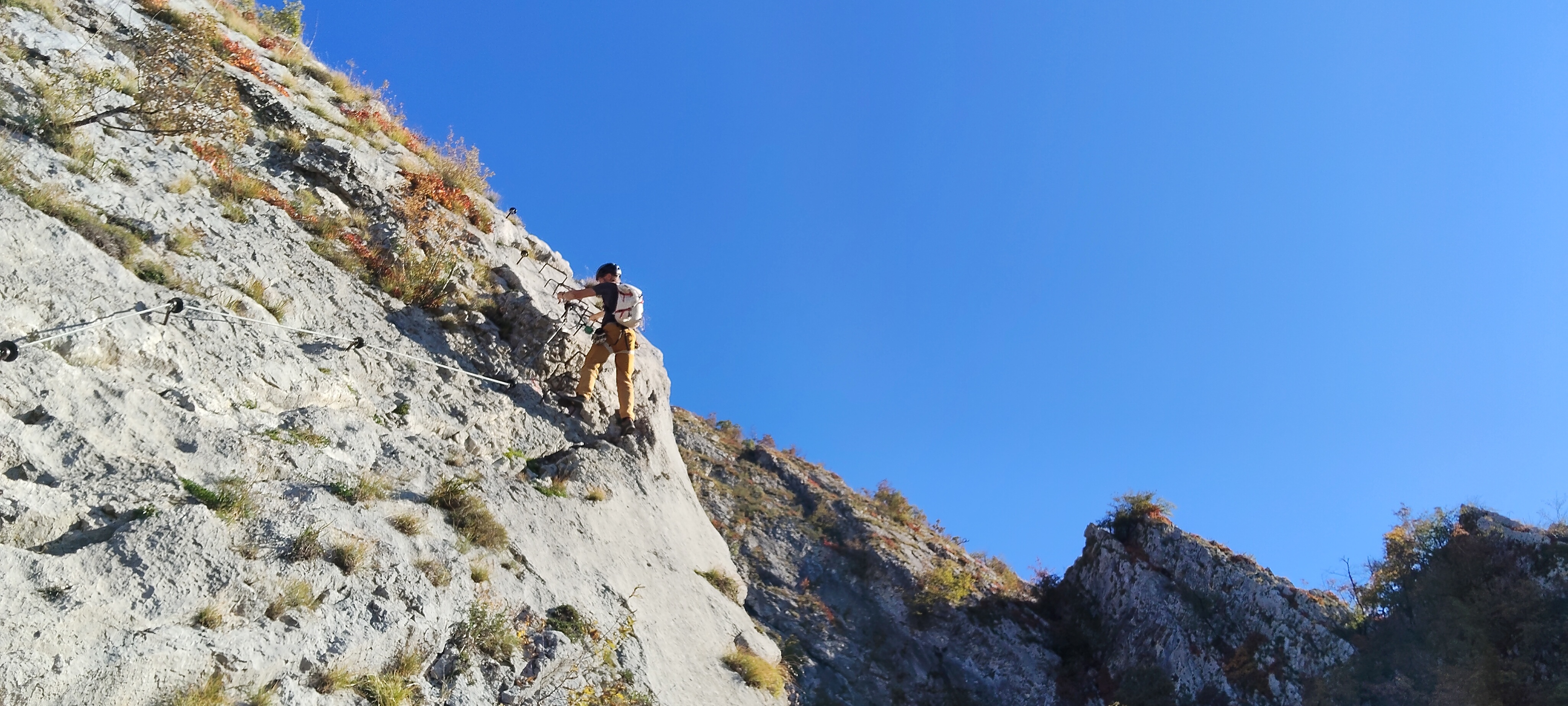 Materiale consigliato: set da ferrata, casco, guanti, scarpe tecniche aderenti